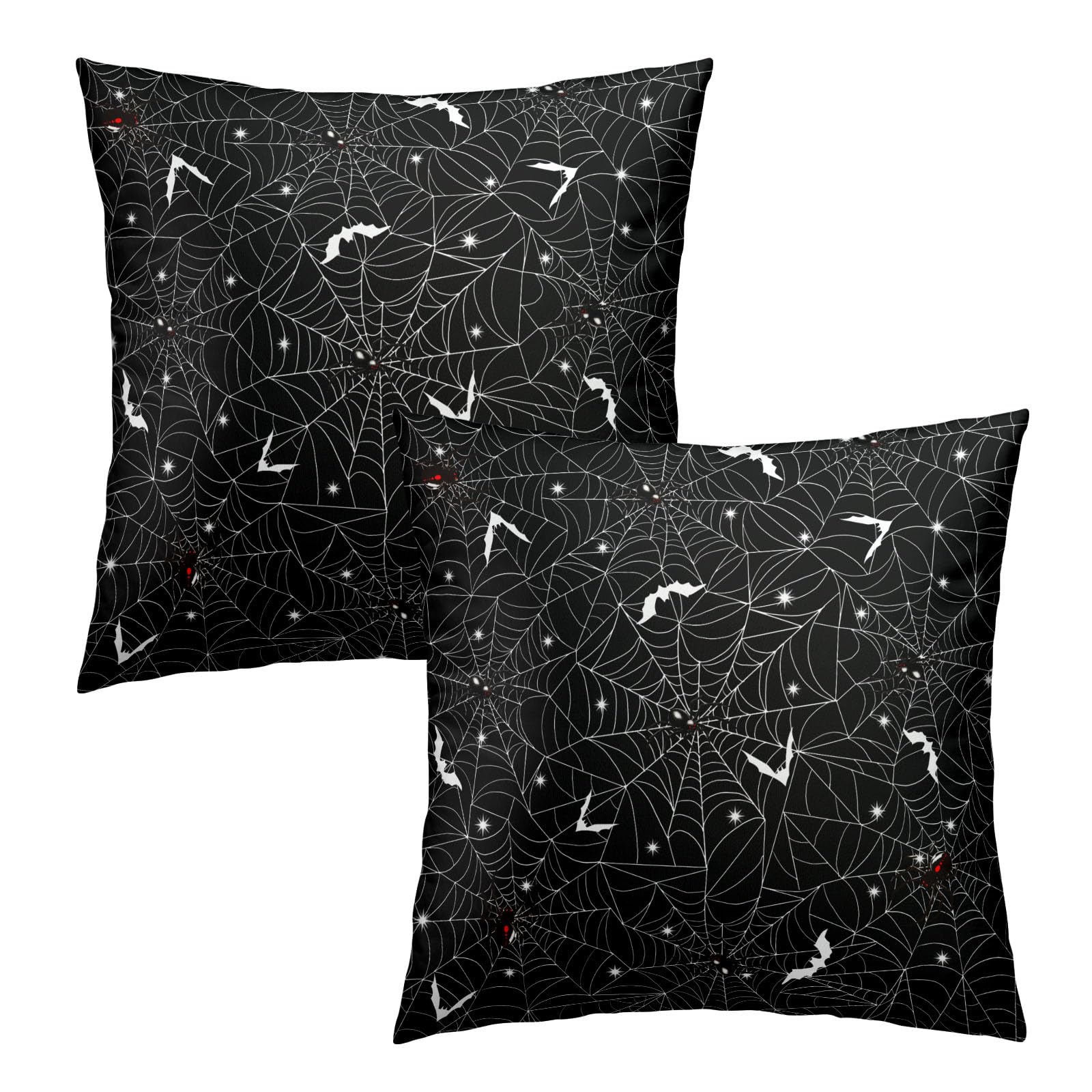 Halloween Spider Web Throw Pillow Covers 18X18 Inches Set of 2 White Bat Pillowcase Soft Cotton Square Cushion Covers for Home Sofa Bedroom Decoration