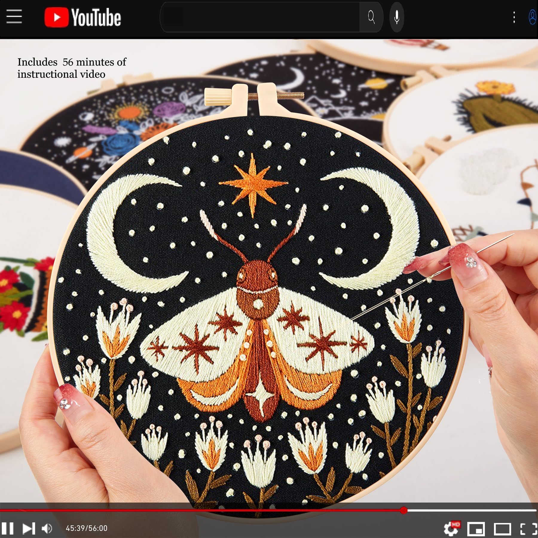 - Embroidery Starter Kits for Beginners: You will get 3pcs embroidery fabric with moth moon and flowers pattern, 3pcs 8 inch embroidery hoops, 6pcs embroidery needles, enough color embroidery threads, needle threader, adjustable thimble, instructions. You can get a pretty craft decor while learning the stitch techniques by finish this adults hand embroidery kit.