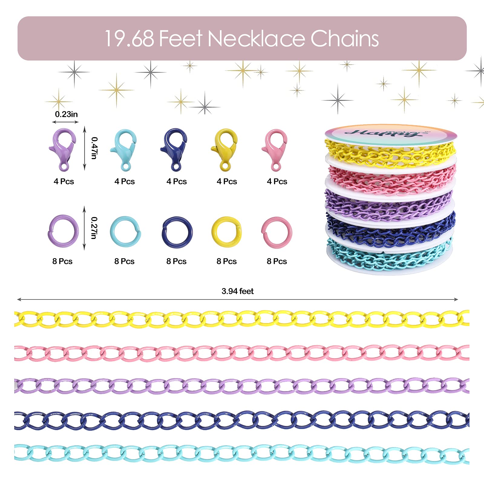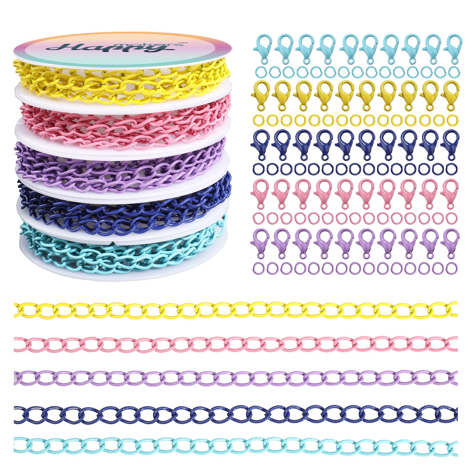 - 19.68 FEET LINK CHAINS NECKLACE SET: 4MM*7MM link chains thin jewelry necklace chains in 5 colors, 3.93 feet per color , 5 colors open jump rings, 8 per color, 40 in total; 5 colors lobster clasps, 4 per color, 20 in total.