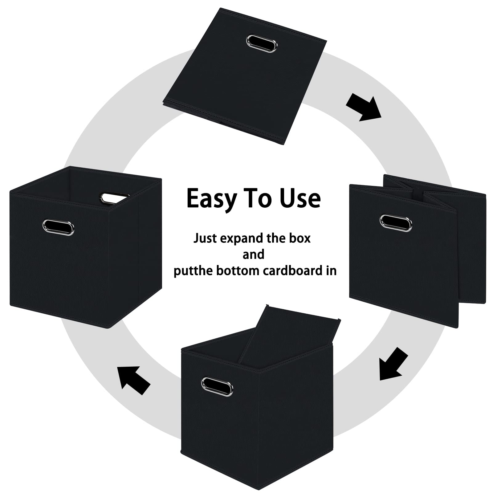 Black Foldable Storage Cubes Bins , Fabric Storage Box Cubes Organizer Baskets with Dual Handles for Home Organizer (Black)