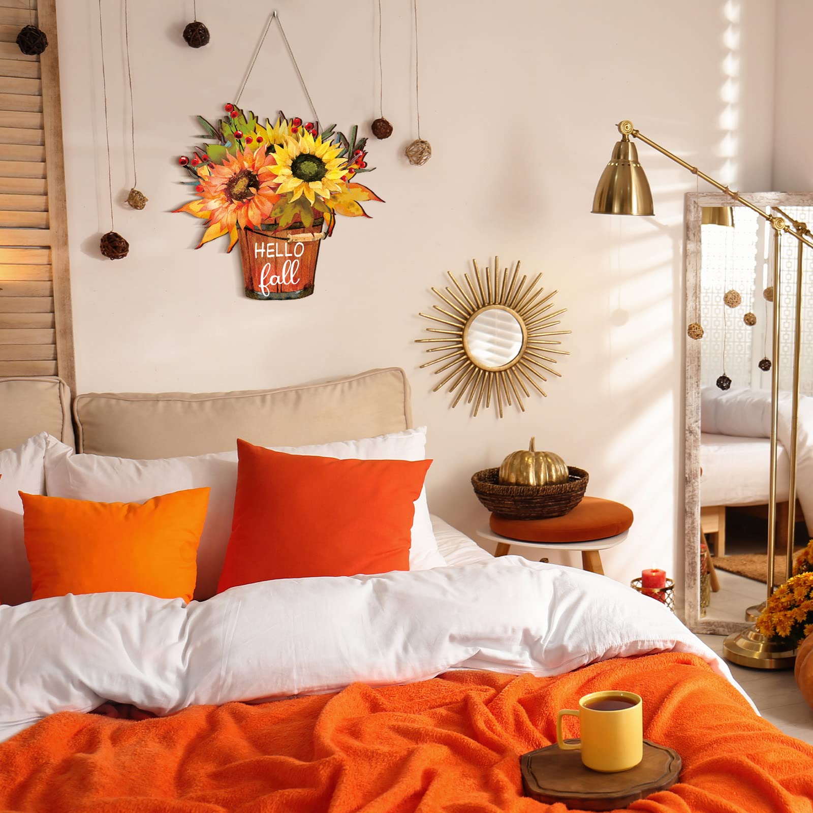 - Warm Fall Themed Design: the welcome sign for front door is designed with a flowerpot that has charming sunflowers blooming inside, and printed with [HELLO fall] on the surface, which echos the warm fall theme, looks aesthetic and elegant