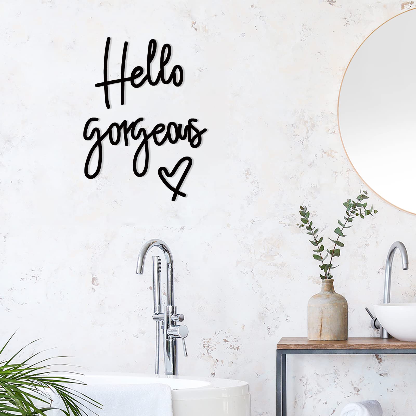 Hello Gorgeous Words Wall Decor 3D Wooden Sign Art for Home Room Office Door Decorations Party Supplies (Black)