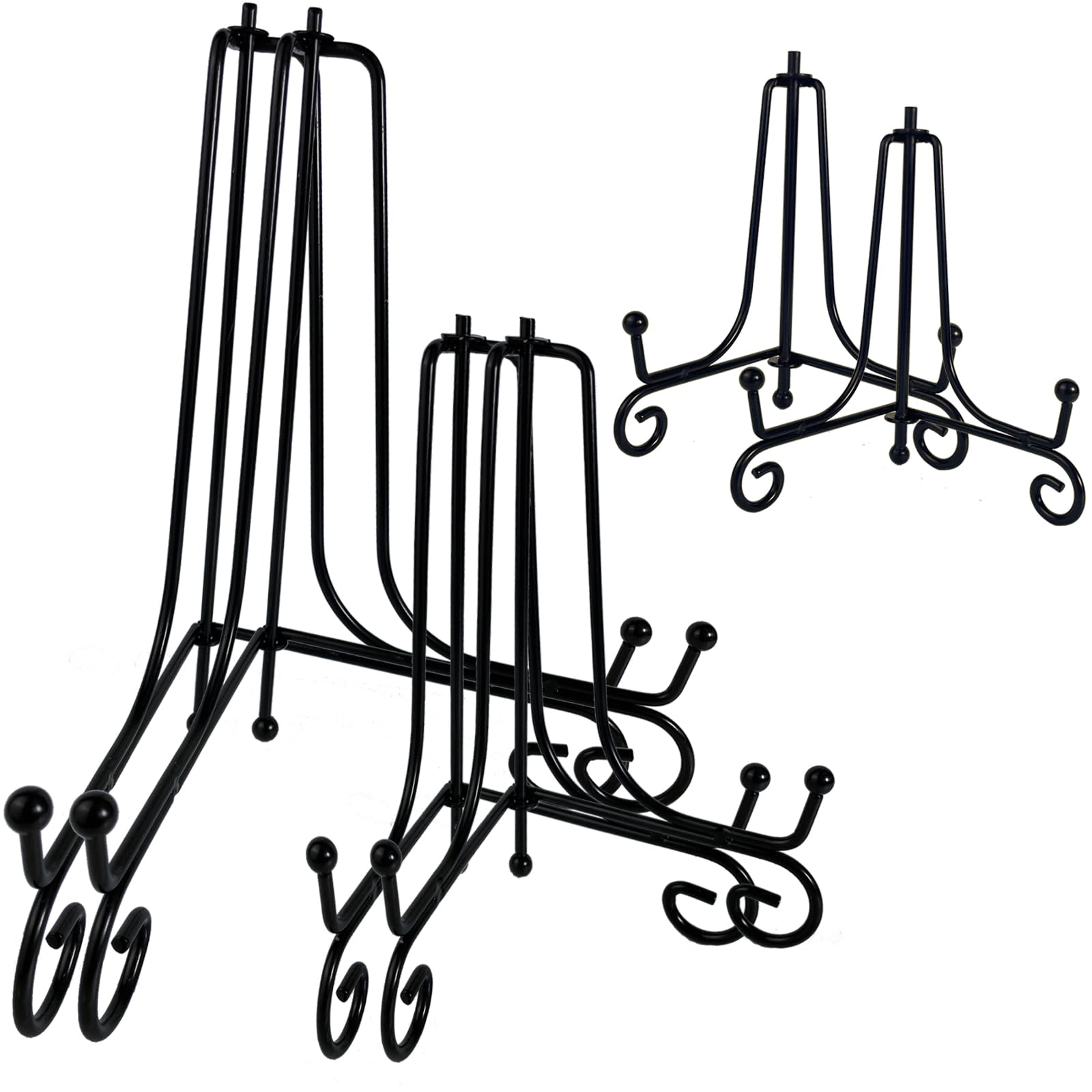 6PCS 3 Size Black Iron Plate Stands for Display 4 6 8 Inch, Decorative Metal Plate Holders for Displaying, Mini Easel Stand, Frame, Book, Card, Plaque, Bowl, Picture Stands for Display
