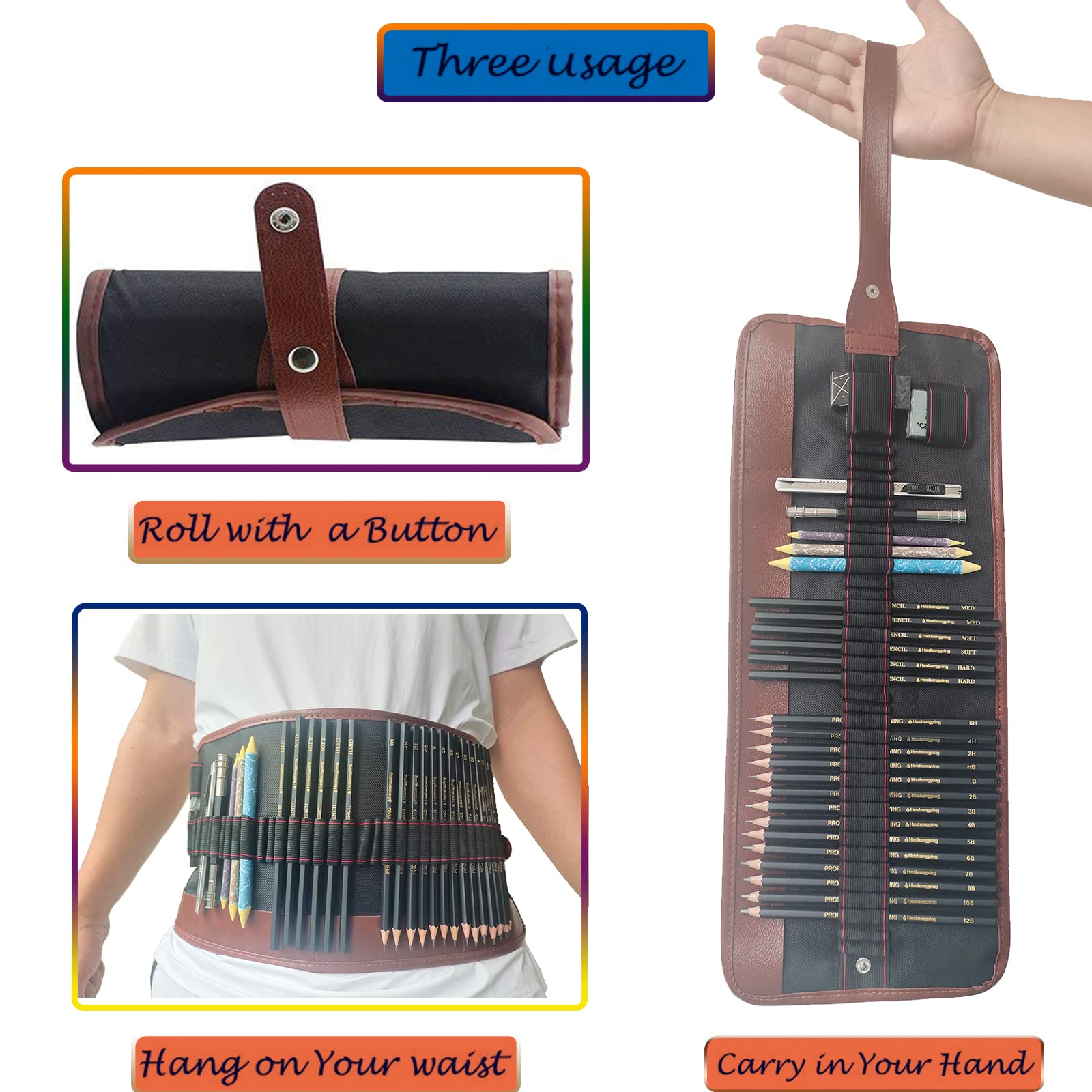 - 【Travel Portable Storage Design】You can store the sketching pencil set properly when not in use. You can even tie the canvas roll bag around your waist and start your artistic creation anytime, anywhere.