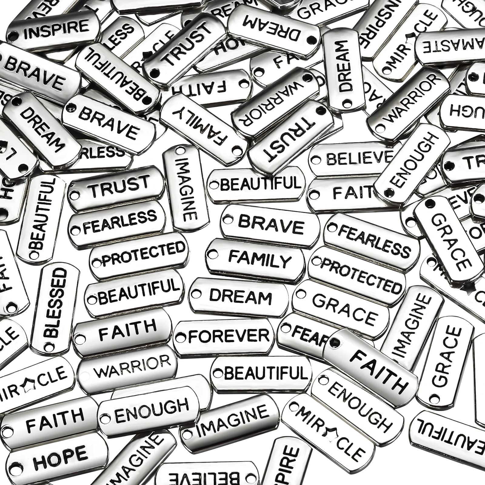 - Inspirational word charms: every word charms connector are engraved with a motivational, inspirational and encouraging word, which will bring you a positive mood and keep a optimistic attitude towards life, suitable to share with your family and friends