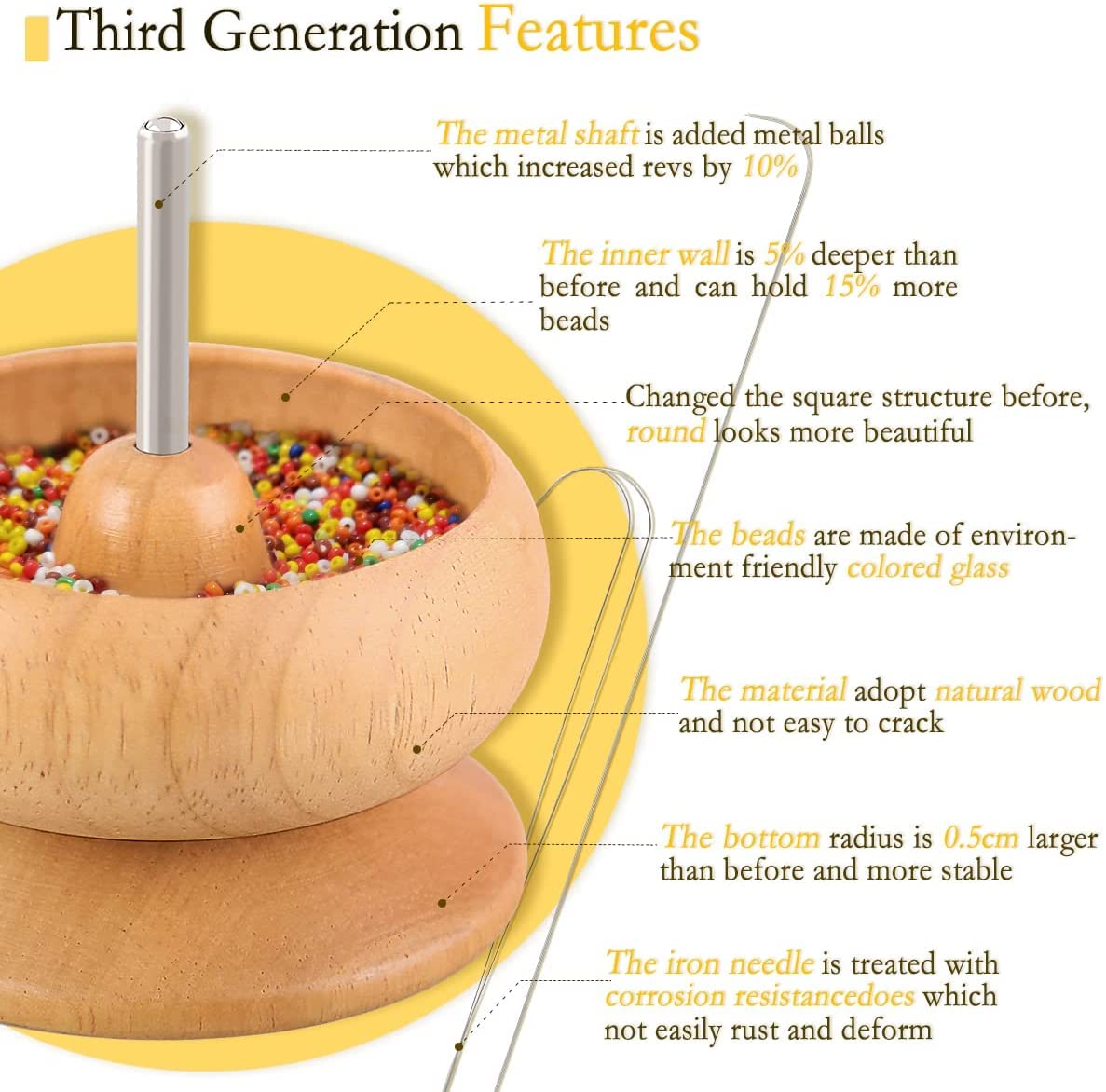 hobbyworker The Upgrade Version Wooden Bead Spinner with 2 Pcs Big Needles,8000 Pcs Seed Beads and 1 Surprise Gift Pack for Jewelry Making Tools,Quickly Stringing Beads Tool