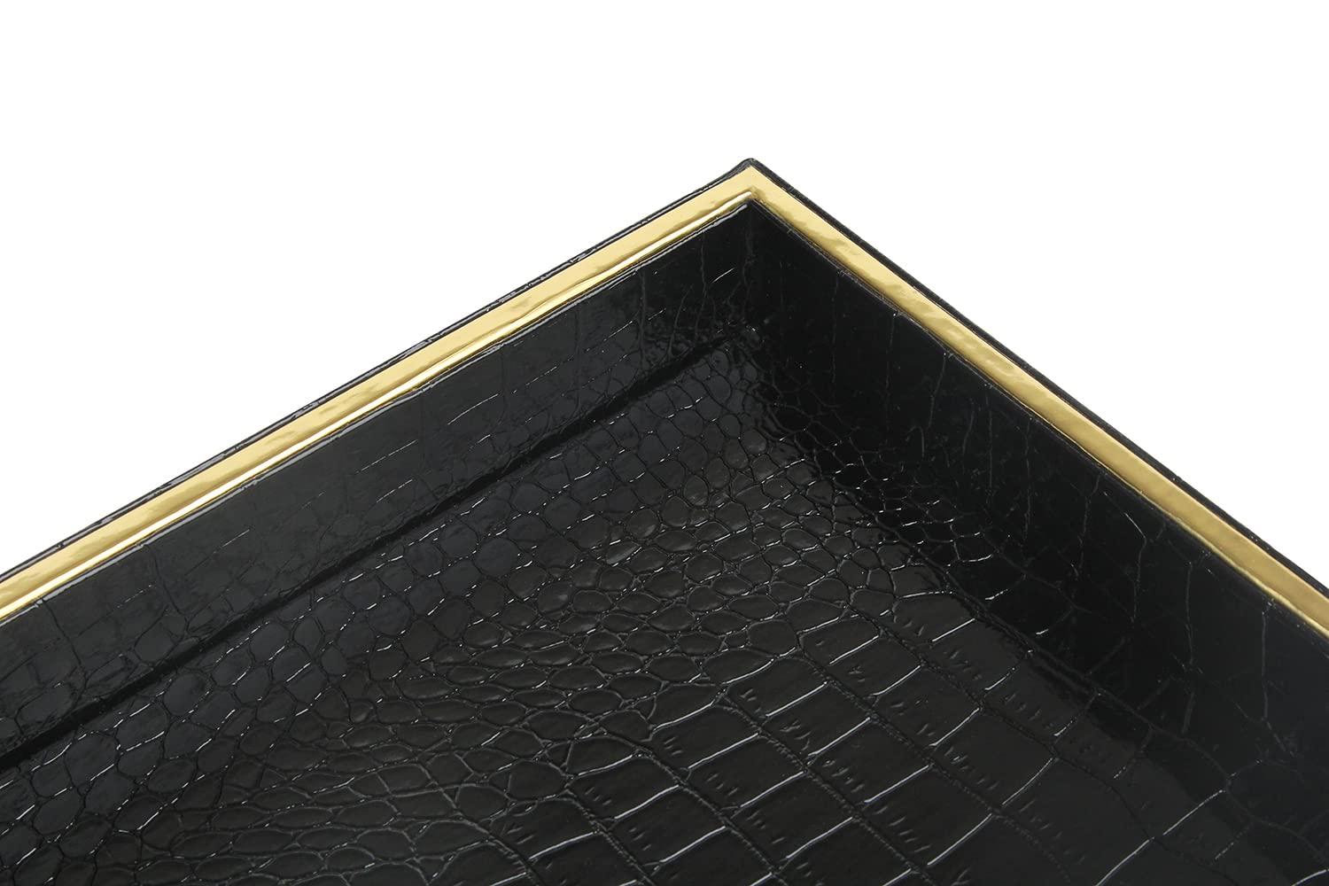 HofferRuffer Faux Leather Vanity Tray, Elegant Desktop Storage Organizer, Decorative Catchall Perfume Tray, Bathroom Valet Tray, Nightstand or Dresser Organizer (Black Croco)