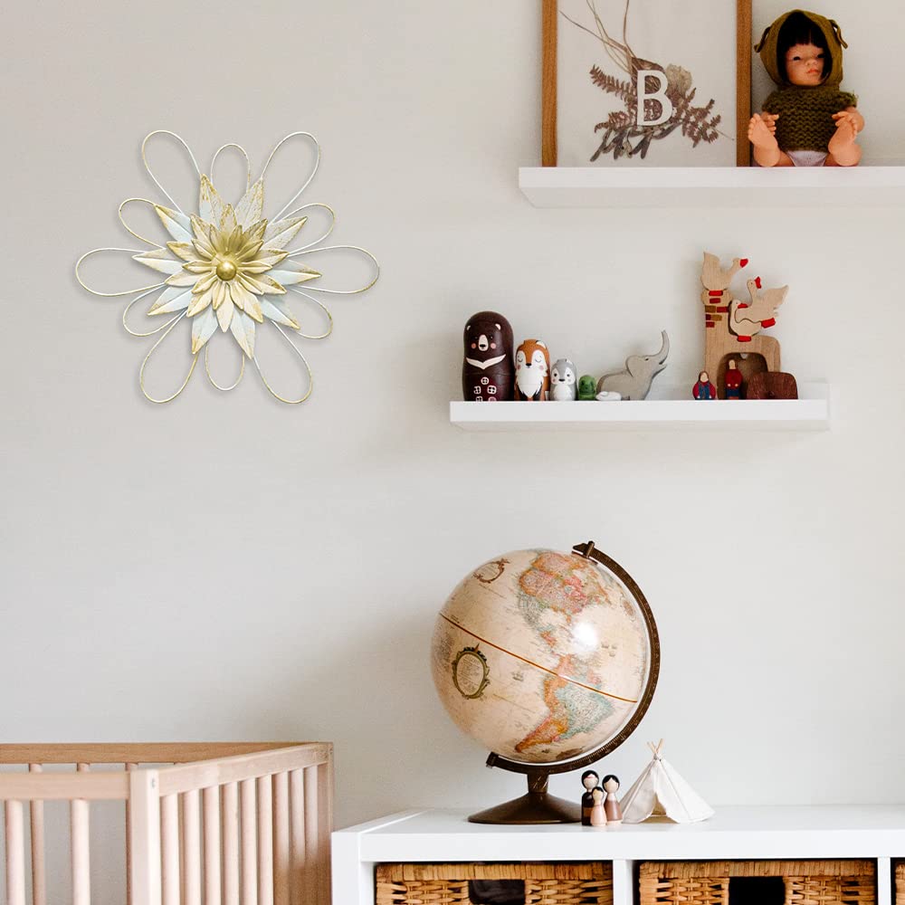 - BRING DIMENSION TO A PLAIN WALL - HOGARDECK metal wall art is a dimensional blooming flower with a soft gold finish and white accents, features a center Arris Pastel Layered Floral overlaid with an openwork floral design surrounded by overlapping loops that create a beautiful flower motif. Its varied, vibrant gold hues bring in a fresh burst of color to decor and offer an eye-catching style for your home.