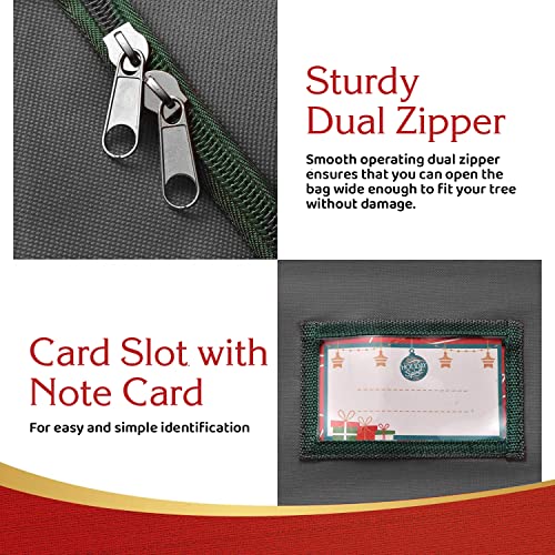 - STURDY DUAL ZIPPER – Our Christmas storage bag features a smooth operating dual zipper that allows you to open the bag wide enough to easily fit your tree. No worries of damaging your tree while placing it inside the storage bag