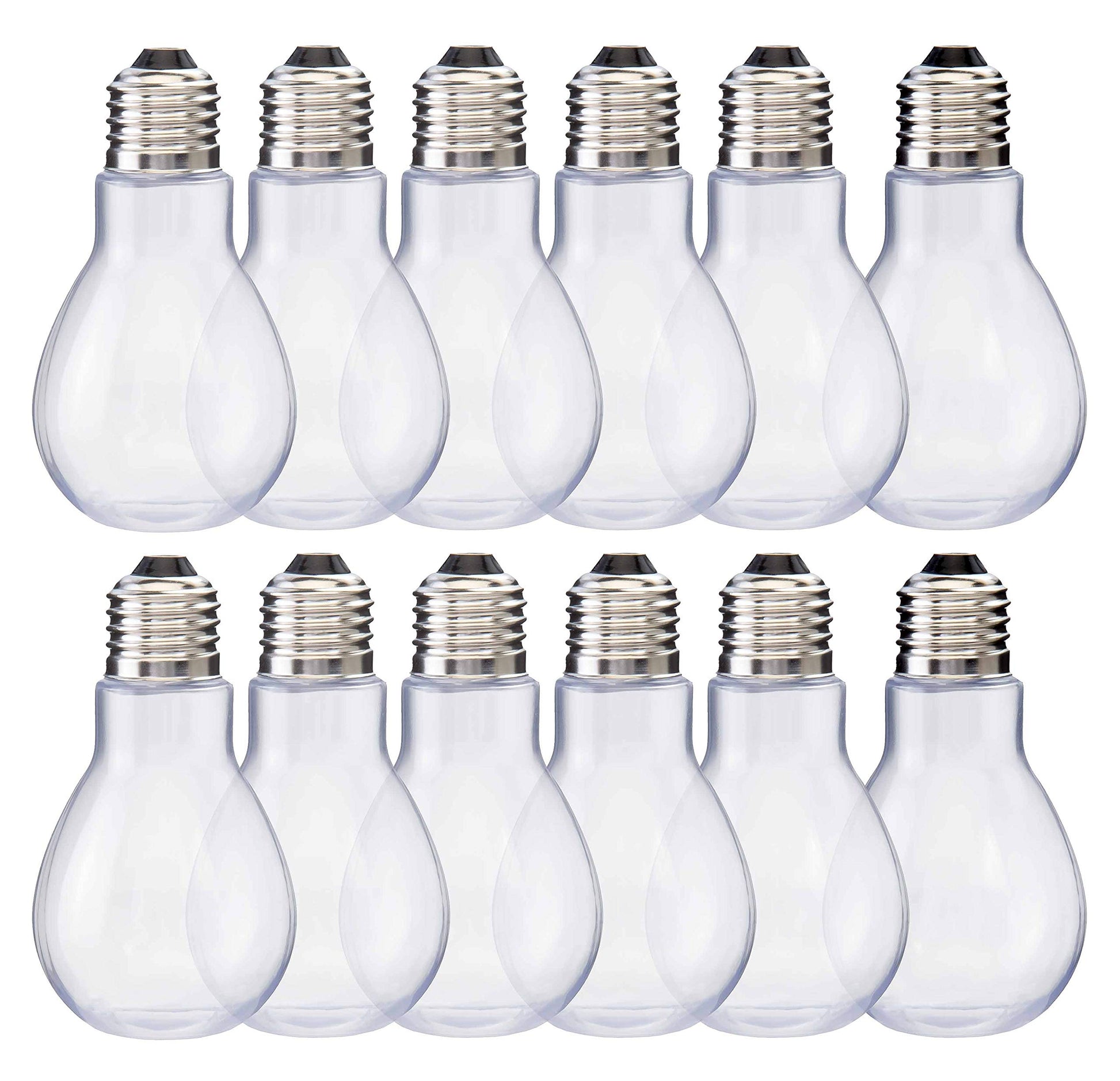 Home Collectives Fillable Light Bulb Containers, 12 Pack β Clear Plastic Candy Jars, Party Favors, Decorative Centerpieces, Arts and Crafts Supplies - Twist Off Cap, Freestanding Bottom, 4β Tall