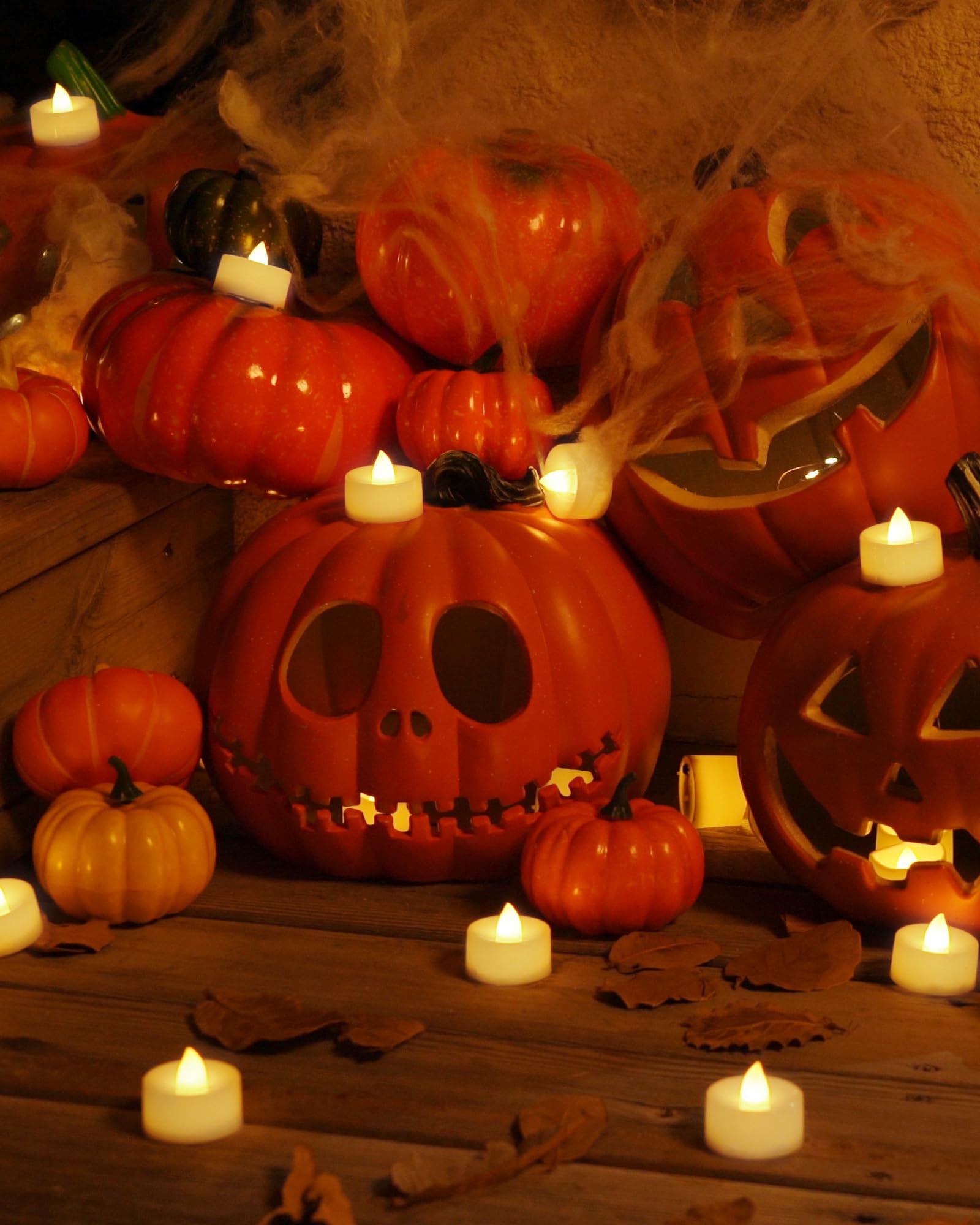 Homemory 24-Pack Flameless LED Tea Lights Candles Battery Operated, 200+Hour Fake Electric Candles TeaLights for Votive, Halloween, Ofrenda, Diya, Wedding Centerpiece Table Decor, Funeral, Christmas