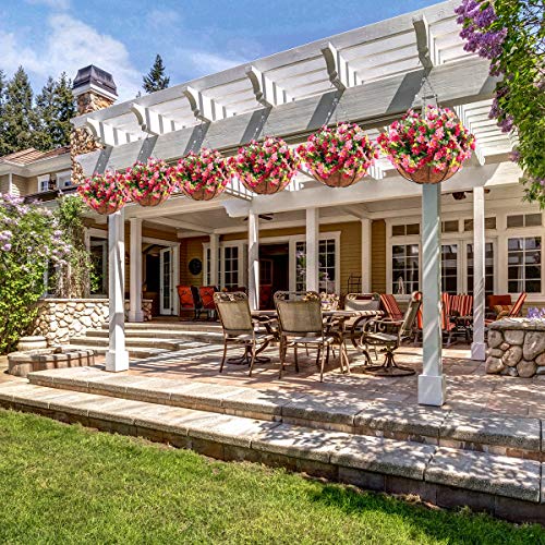 - [Materials]: Crafted coconut palm baskets and high-quality artificial flowers are made of silk, and the stems are wrapped in plastic with iron wire,create a sturdy and adjustable angle,natural and real-like, environmental and safety.The hanging plant basket with a black vinyl coating for good rust protection.