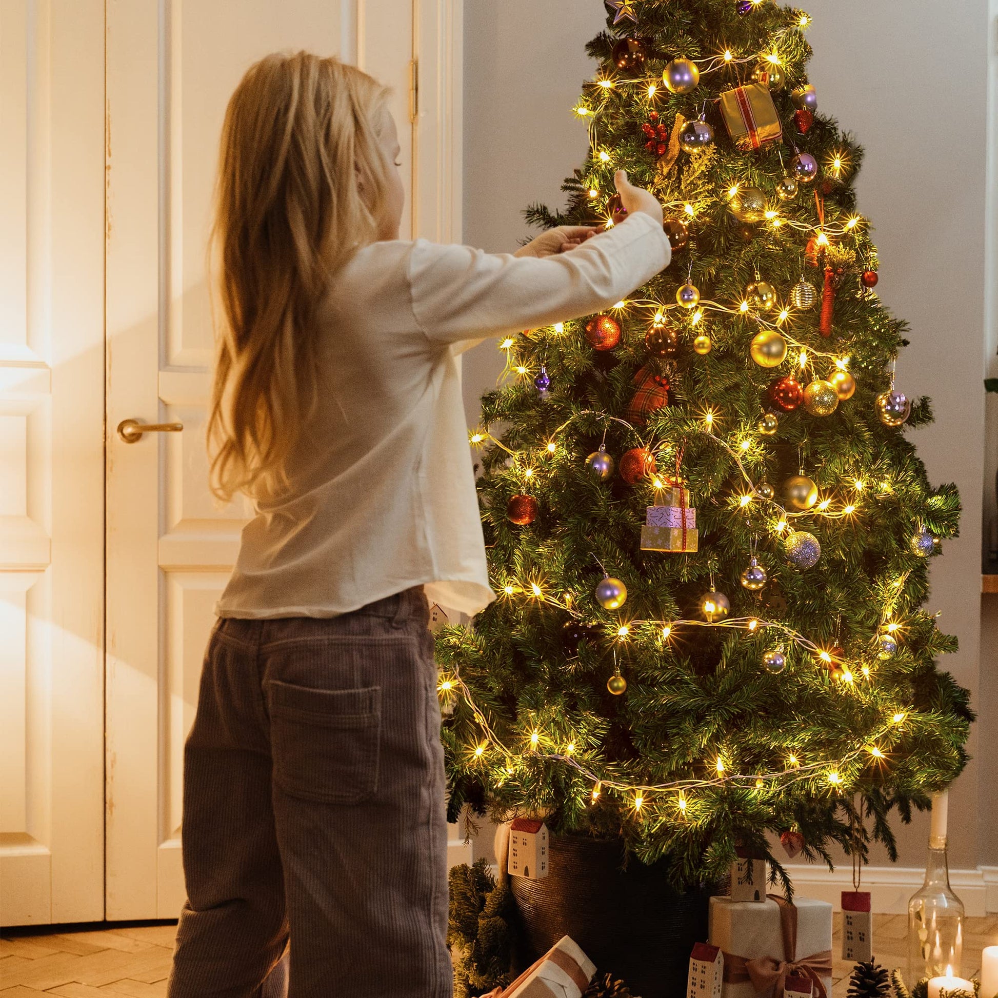 - ⛄Light Up Your Christmas:This Clear Christmas lights on white wire set includes 100 transparent mini-lights, total length 26 feet white wires, and each bulb is 2.74inches apart.Also we provide 4 x Extra fuse and 4 x Extra bulbs for you to replace,is a very worthwhile Christmas decorative light set.