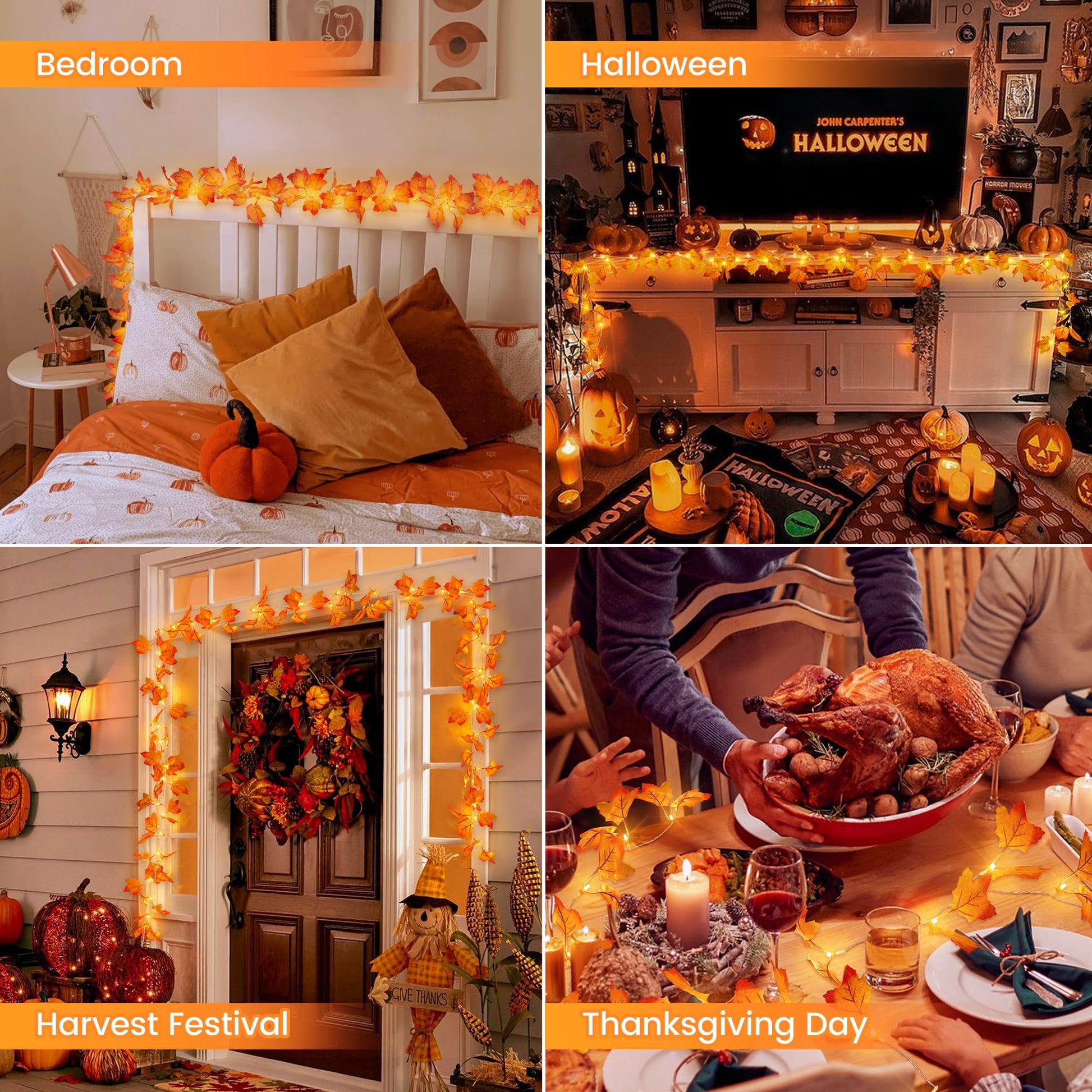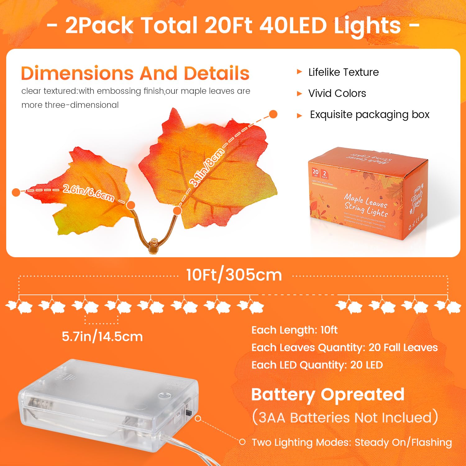 - Vivid Fall Maple Leaves Lights: 2 Pack Total 20ft/40 Led String Lights with 80 Maple Leaves