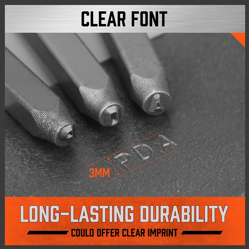 HORUSDY 37-Piece Number and Letter Stamp Set 1/8 (3mm) (A-Z & 0-9 + Love) Punch Perfect for Imprinting Metal Stamping kit, Plastic, Wood, Leather.