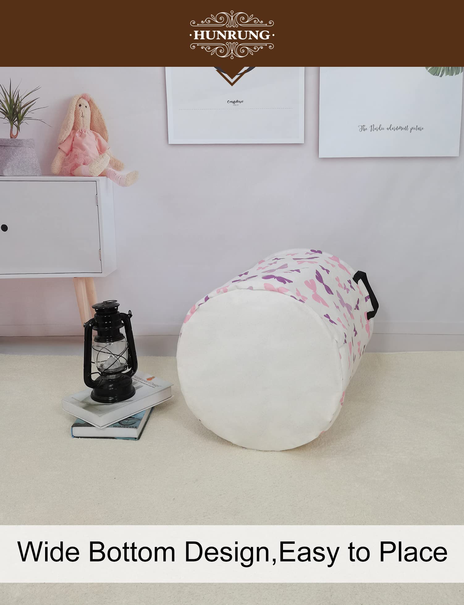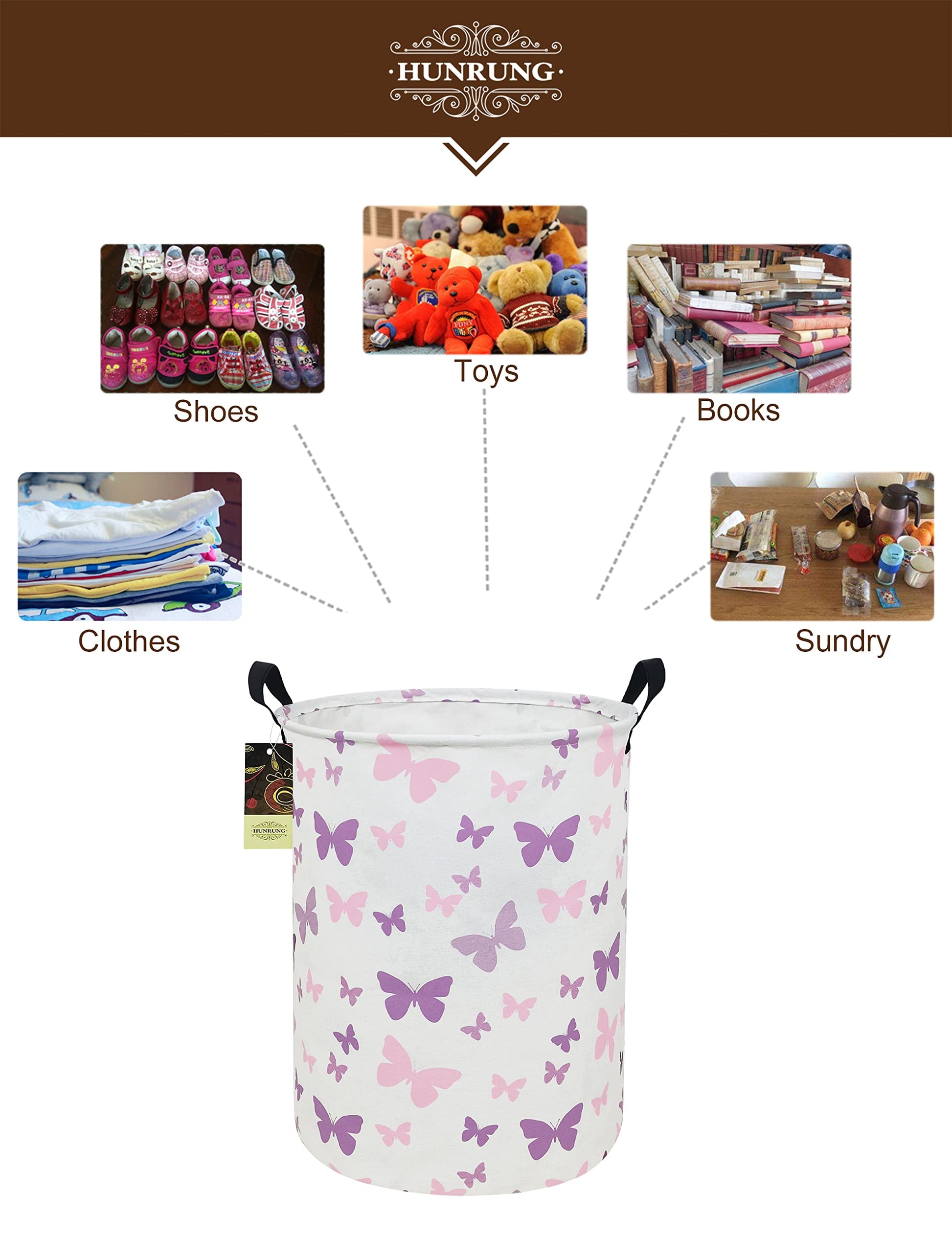Laundry Hamper,Large Canvas Fabric Lightweight Storage Basket Toy Organizer Dirty Clothes Collapsible Waterproof for College Dorms(Round-Butterfly)