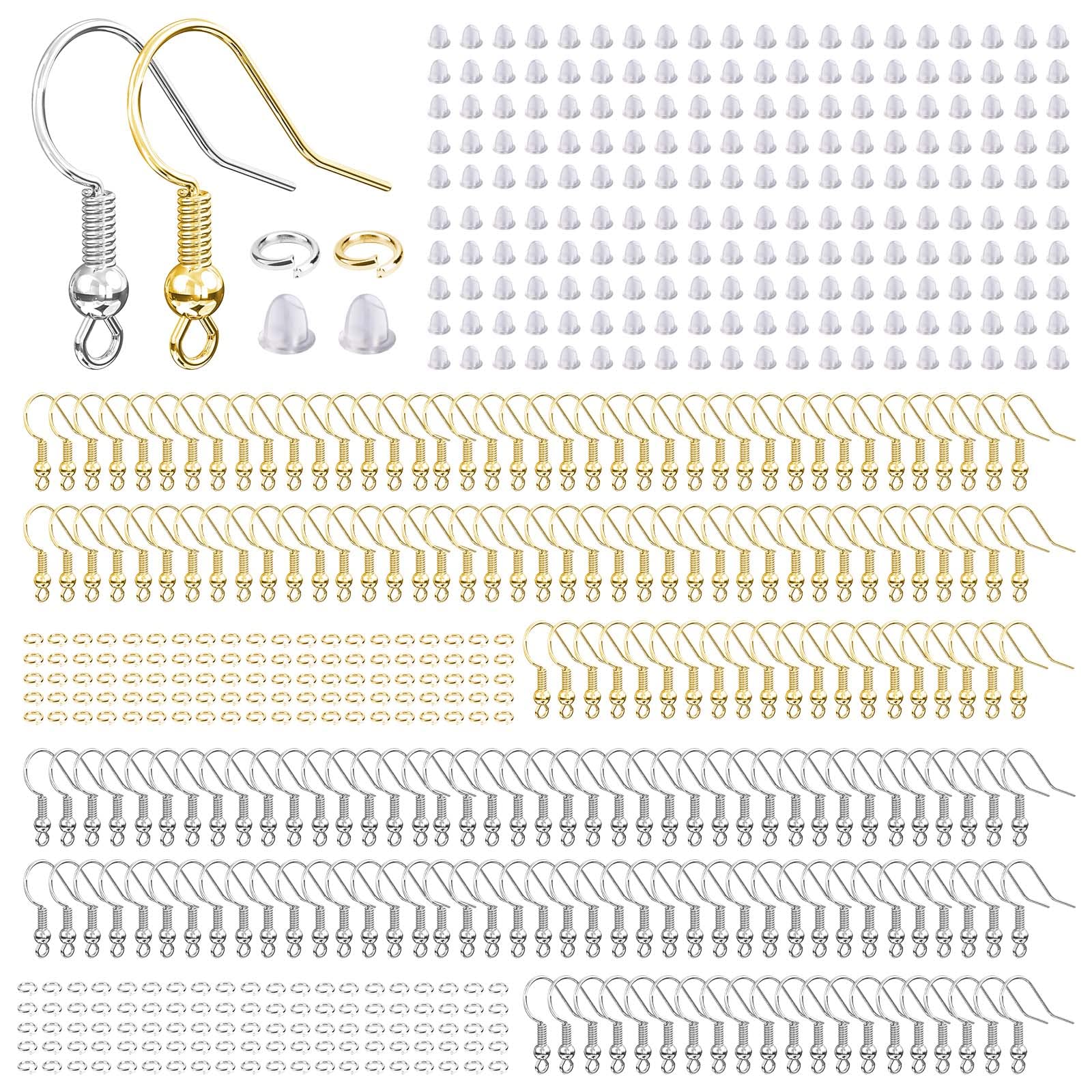 Hypoallergenic Earring Hooks, 600 Pcs Earring Making Supplies Kit with Earring Hooks, Jump Rings and Earring Backs for Jewelry Making (Silver and Gold)