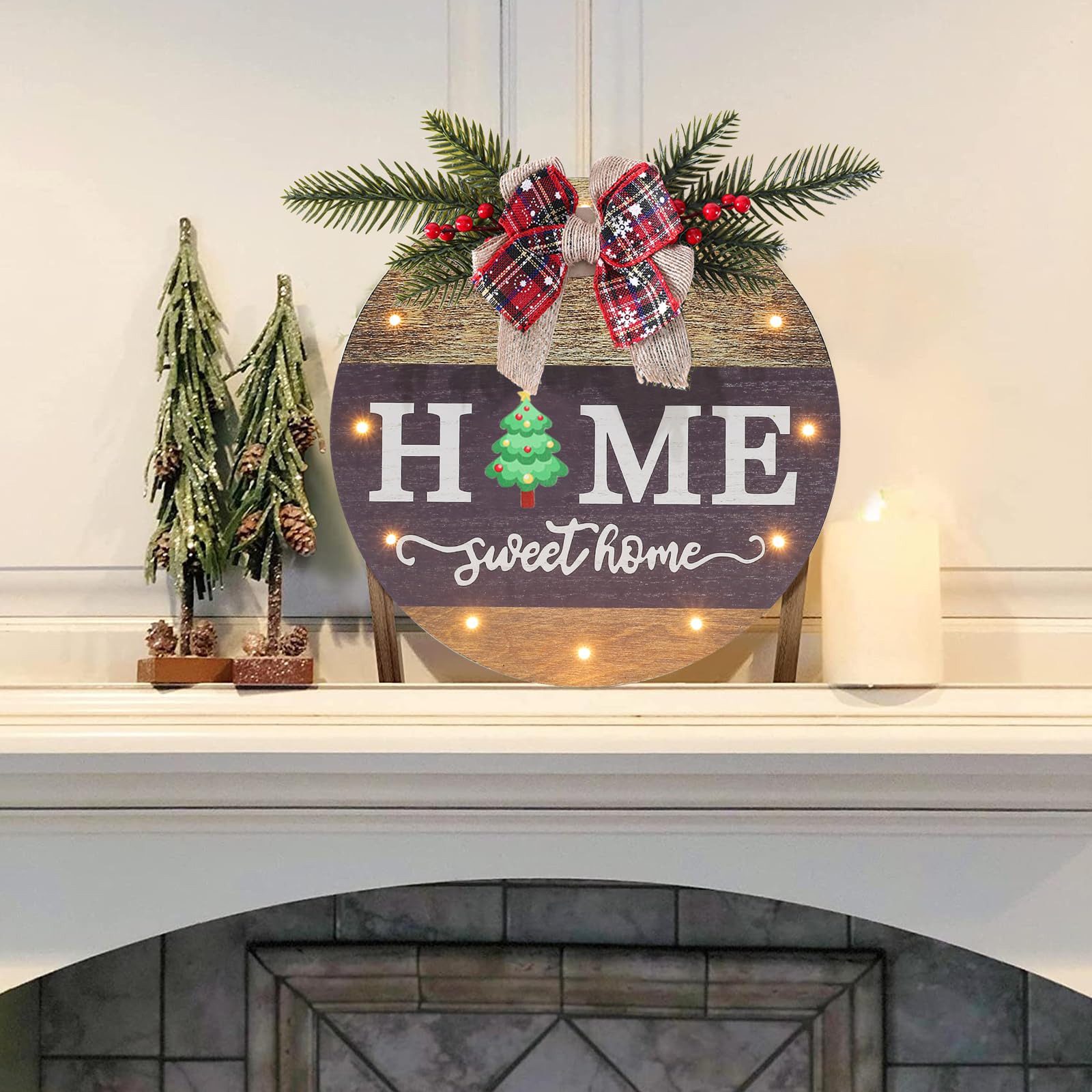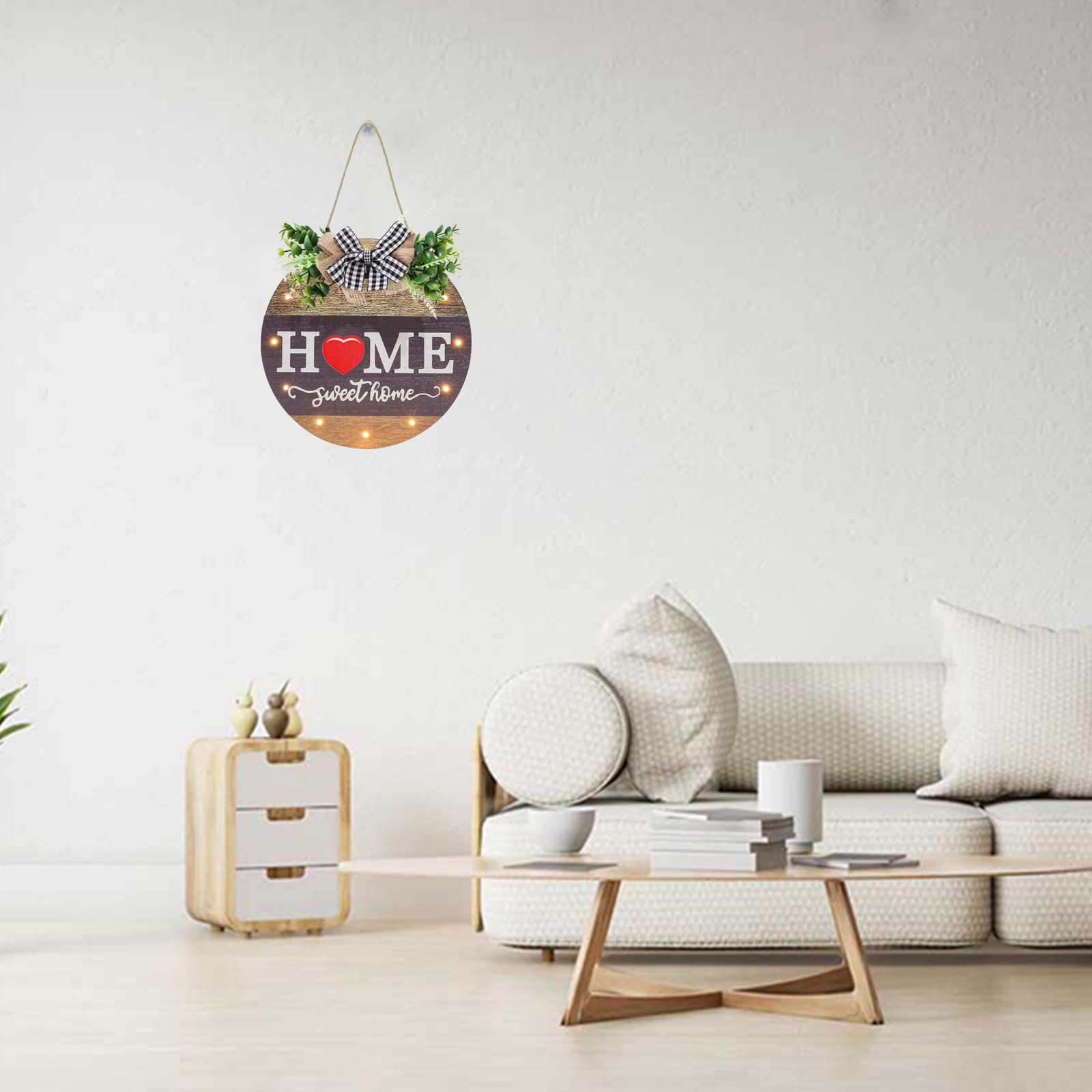 - HOME SIGN WITH WARM LIGHT – The round wooden welcome sign surrounded by 12 LEDs which creates a warm atmosphere at night, It bringing strong holiday atmosphere will not just decorate your home but also catch your guests eyes.