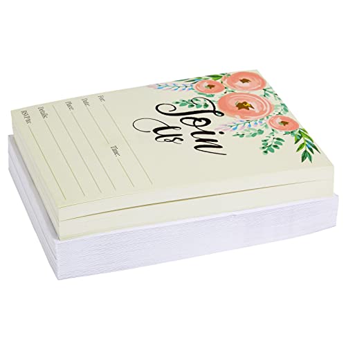 Invitation Cards - 50 Fill-In Floral Classy Cards with Envelopes. Great for Birthday Invitations, Bridal Shower Invitations, Baby Shower Invitations, and Wedding Invitations, 5 x 7 In, Postcard Style