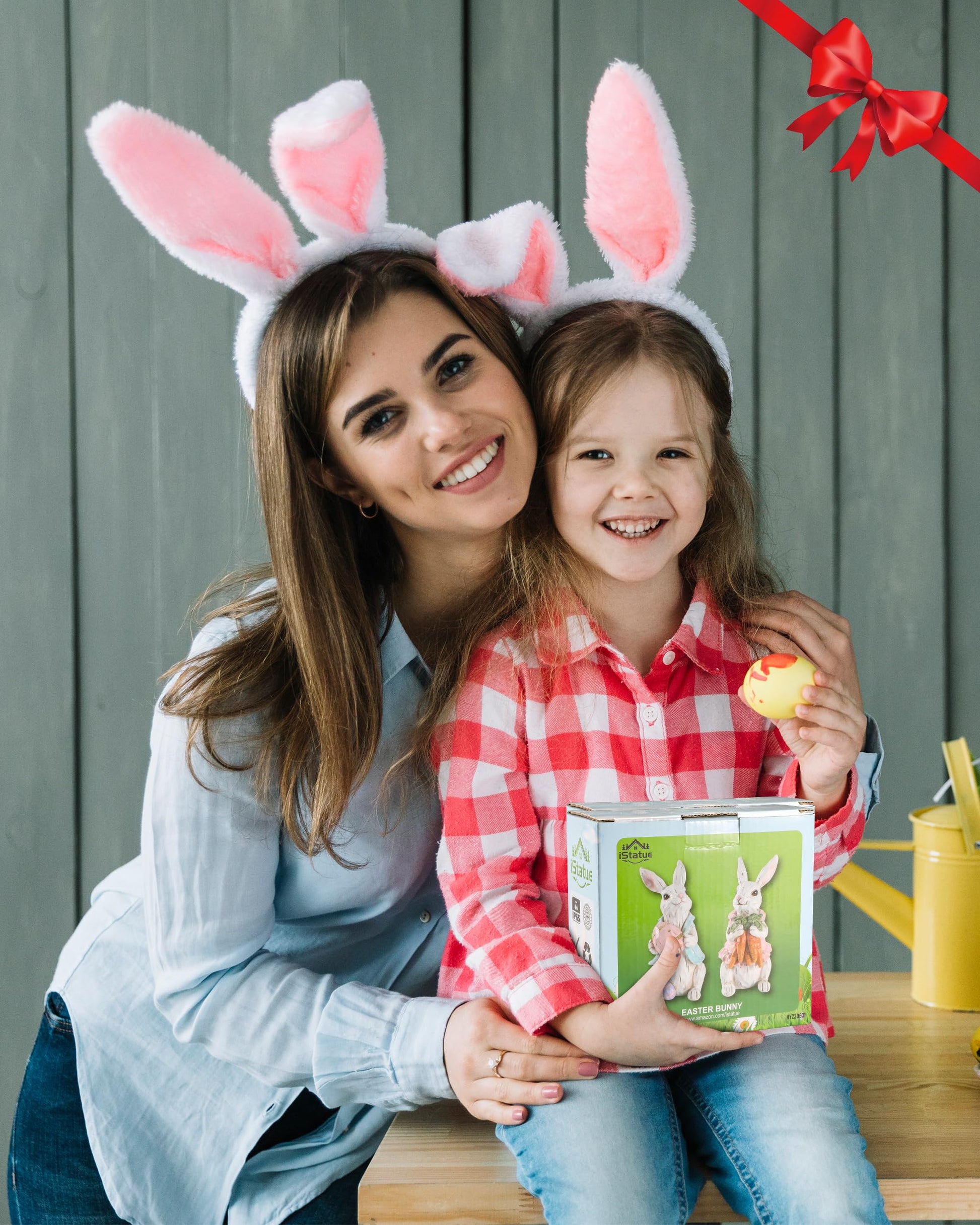 - šØ Hand-Painted Detailing: Each bunny is meticulously painted with realistic fur textures, expressive eyes, and adorable outfits. One bunny holds a colorful Easter egg while the carries a bunch of carrots.