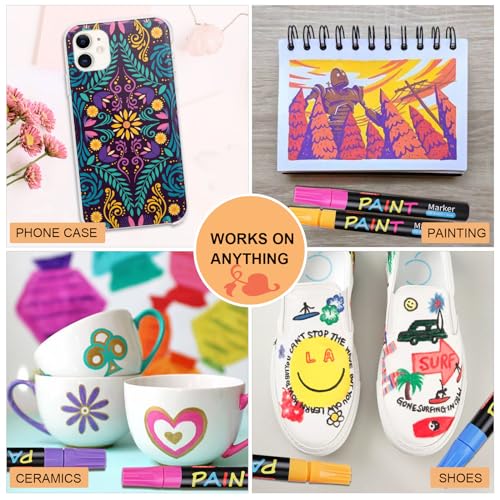 - 【20 Vibrant Color】Paint markers comes with 20 vibrant colors, enable to draw or add embellishments to your wood craft, glass jars, Easter plastic eggs, Christmas balls, cards, painted rocks, stones, canvas shoes, wood slices, tires, clay pot etc, fabric markers. Both beginners and professionals can better release your creativity !