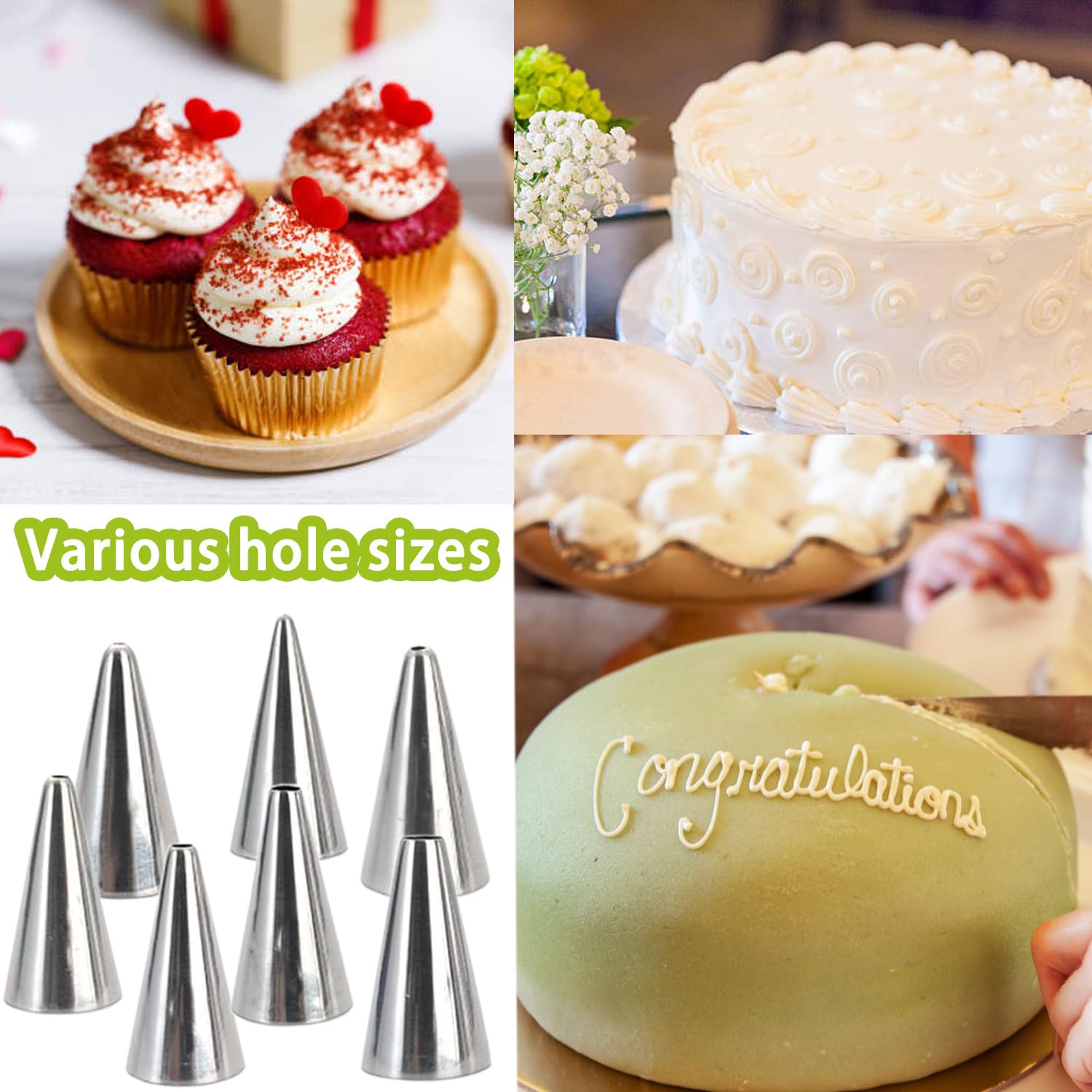 - 【Set of 7】We offer 7 round hole Russian piping nozzles to give you more confidence to start decorating your cupcakes, cakes, cookies, muffins, pastries!
