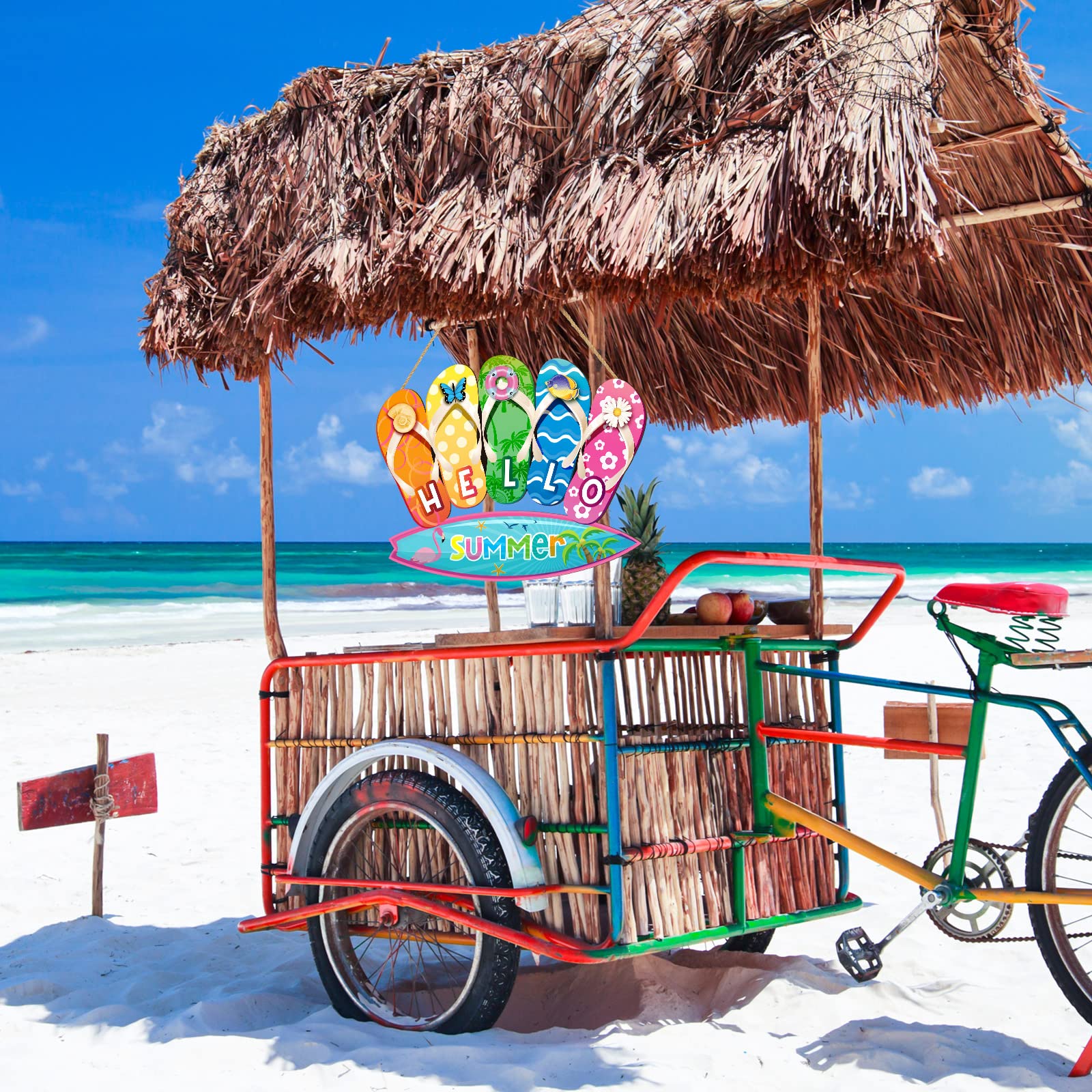 - Summer beach slipper appearance: this crafted summer wooden sign uses rich beach slipper elements, shells, waves, coconut trees, etc. Enjoy every moment of it, this exquisite design will surprise you and your friends will praise it