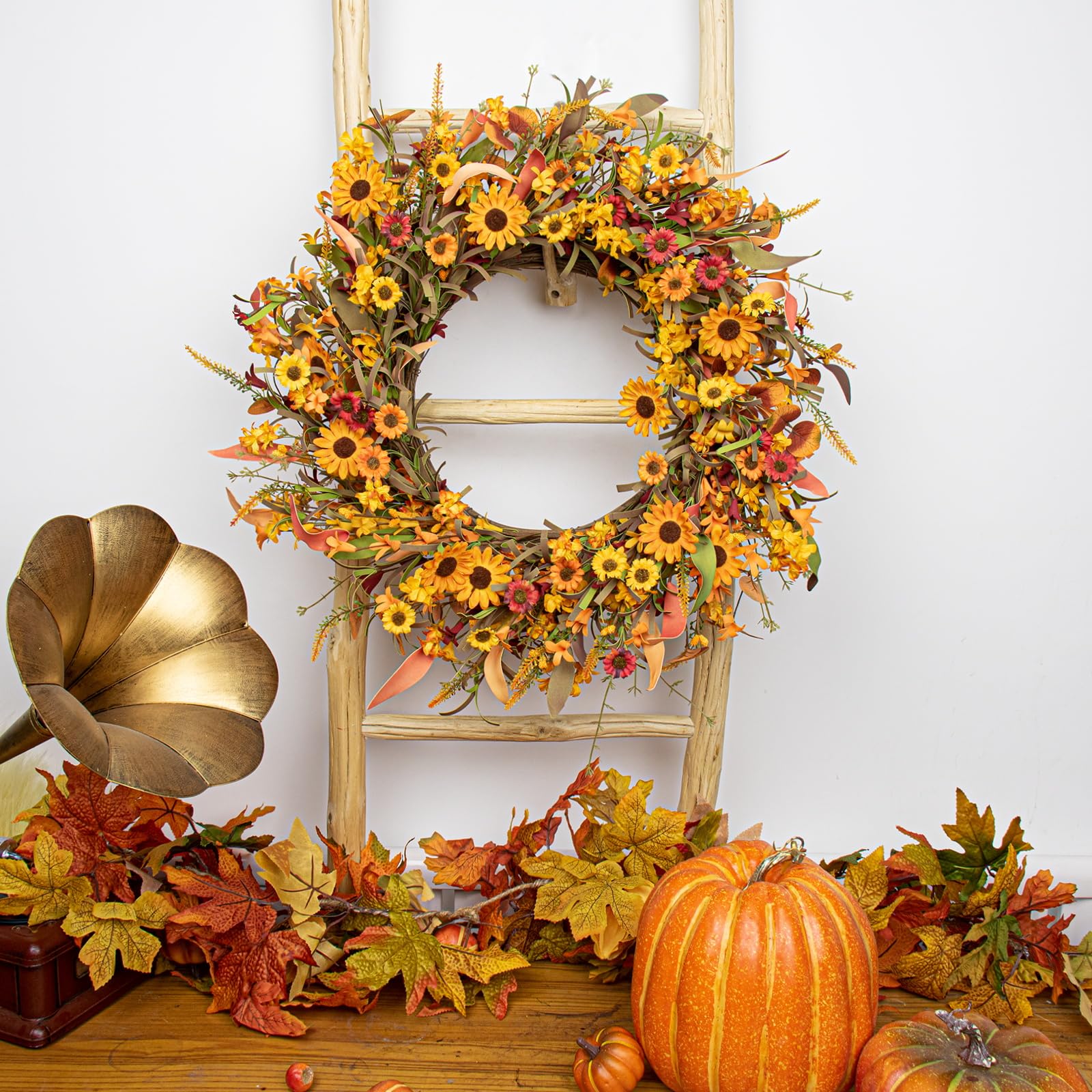 - 【Artificial Fall Wreath】Featuring colorful autumn flowers containing various autumn foliage .