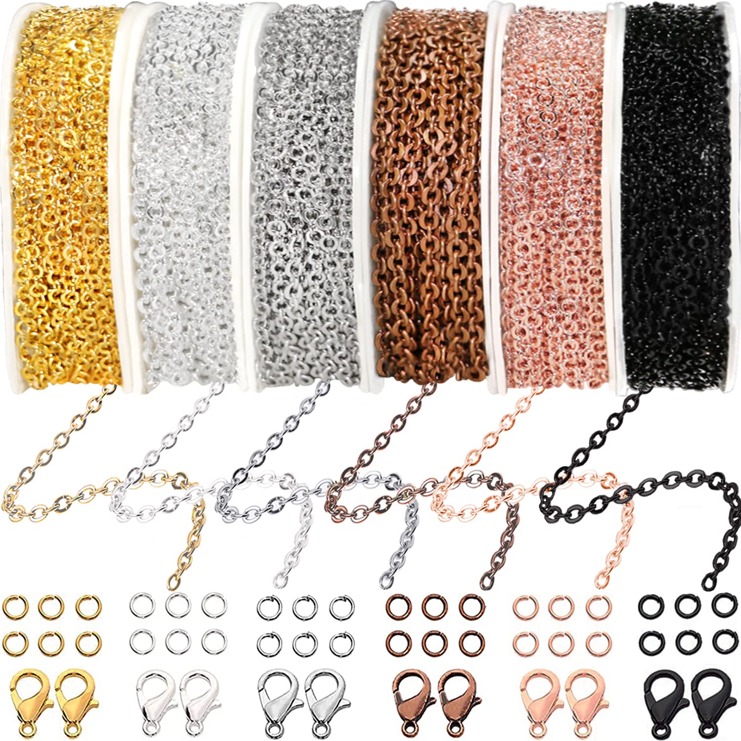 - SET OF 6 ROLLS: 6 Colors Rolls, 10ft (3m) per roll, 60ft (18m) in total; 6 Colors Lobster Clasps, 10 per color, 60 in total; 6 Colors Jump Rings, 30 per color, 180 in total.