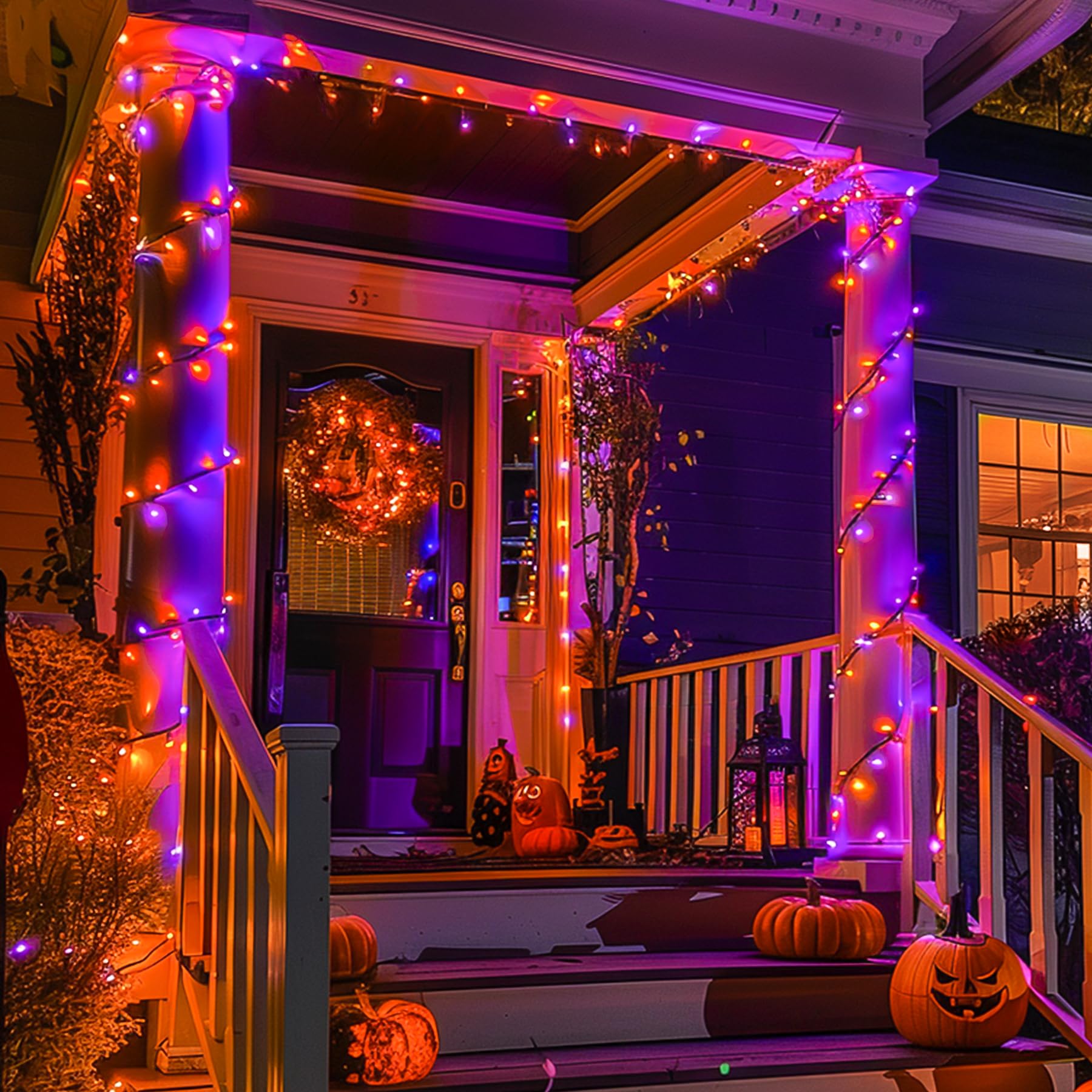 - 【Weatherproof & Safe for All Occasions】Withstanding various weather conditions (IP44), including heavy rain and snow, our orange purple Halloween lights are ideal for outdoor decorations. Safety is paramount. The insulated copper wire keeps the Halloween decorations lights cool to touch even after prolonged use, ensuring no heat or radiation. Low power consumption guarantees safety and a delightful Halloween experience.
