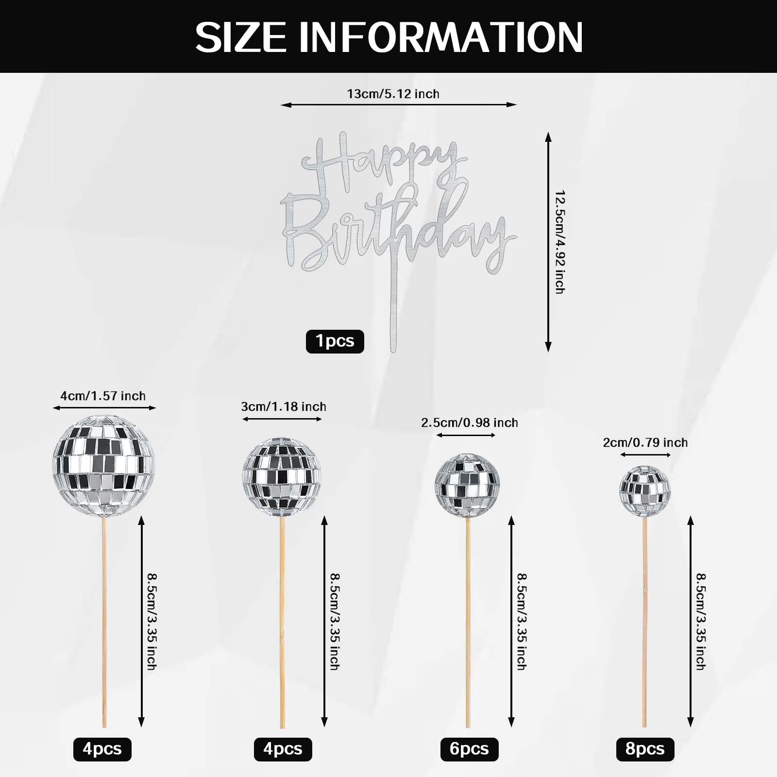 - Value Pack: You will get 22pcs of the 4 size disco ball cake toppers and 1pc silver happy birthday cake topper, sufficient quantity and variety of sizes can meet different applications