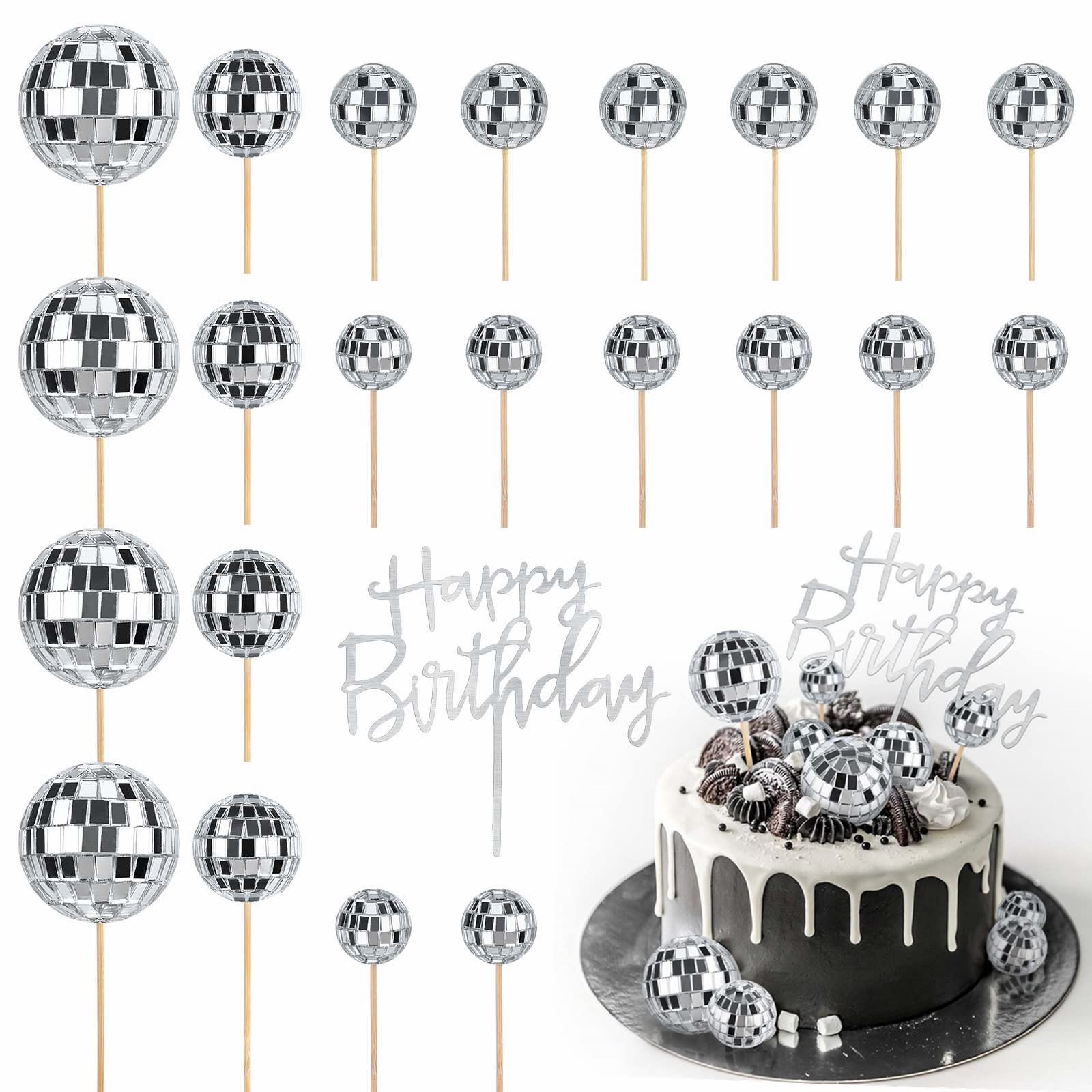 JOERSH 23pcs Disco Ball Cupcake Toppers Happy Birthday Cake Topper - 1970s Disco Ball Cake Picks Disco Theme Cake Decorations for Disco Theme Party 70s Disco Party Favor
