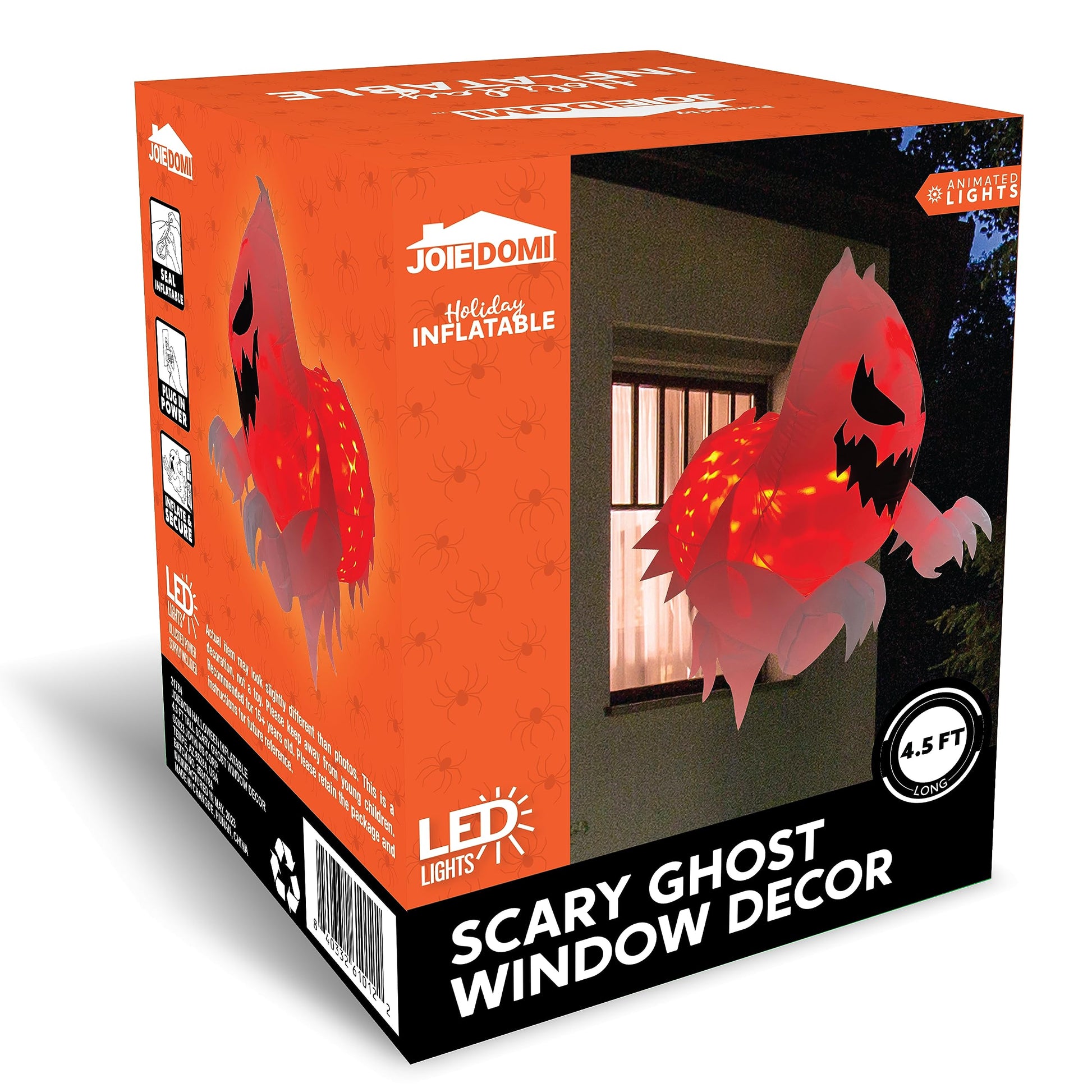 - Excellent Design. The 4.5ft Halloween inflatable scary ghost window breaker decoration features a striking design that sends shivers down your spine. With its horrifying expression, elongated sharp claws, and a body breaking out from the window, it creates an atmosphere of pure fright, perfect for Halloween. This inflatable comes with an extended cord, suction cups, fastened ropes, and a plug with UL certification.