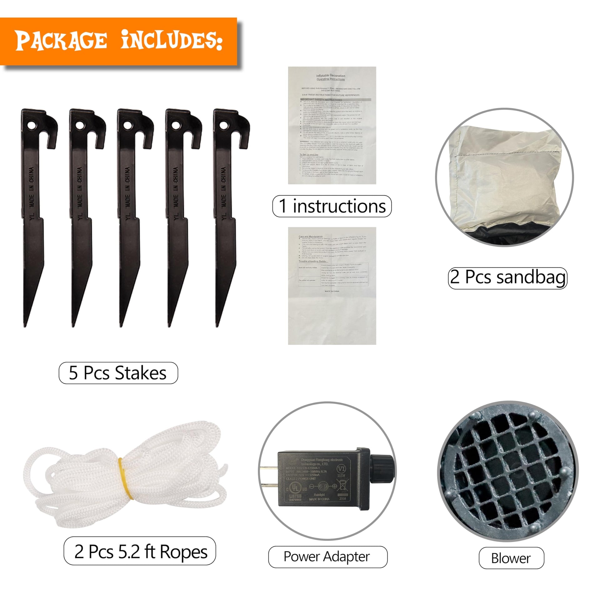 - LIGHTED INFLATABLE DECOR: Package includes uninflated item with power adapter and blower*1, 5.2ft tie strings*2, plastic stakes*5, and manual*1. When inflated, the height reaches 6ft.