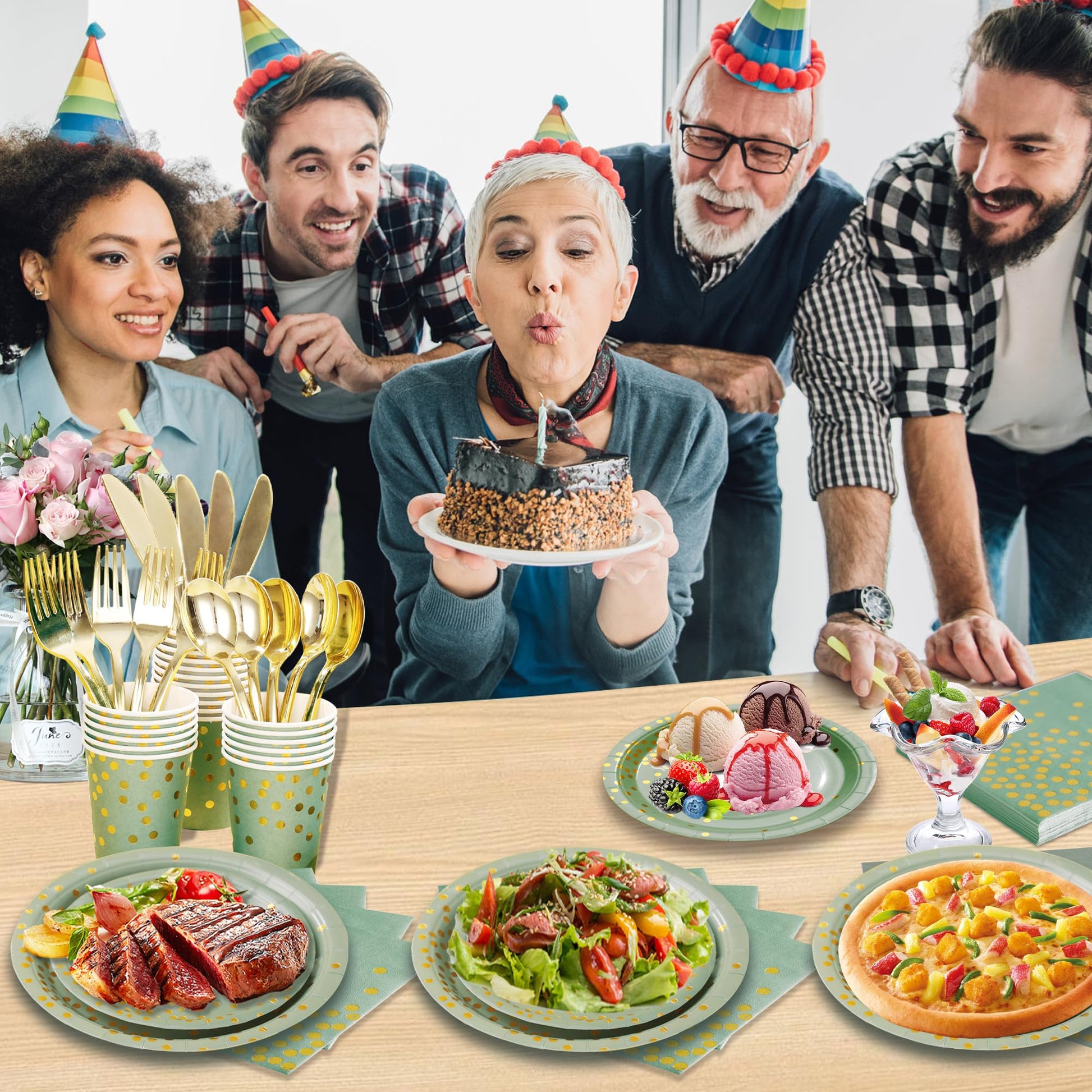 - 【Suitable for Any Occasion】Sage green and gold party decorations are suitable for almost any occasion, such as birthday, wedding reception, anniversary, baby shower, bridal shower, family gathering, picnic, BBQ theme party, etc. Add a touch of color to your table!