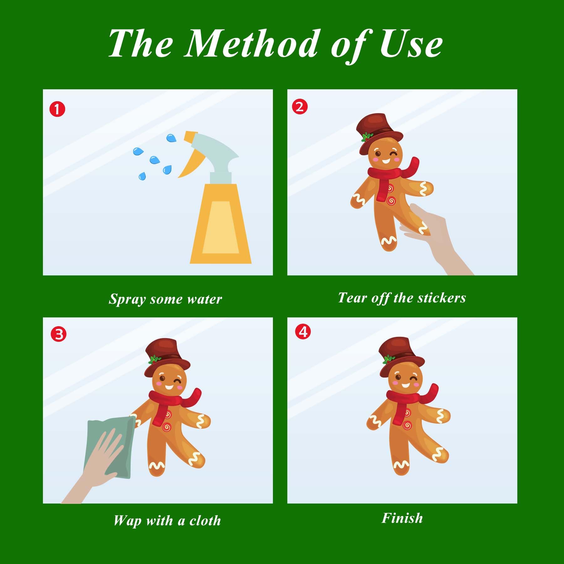 - 【CHRISTMAS WINDOW CLINGS DECORATIONS HAS NO ADHESIVE】 Christmas window stickers are DOUBLE-PRINTED clings, Not need glue, spray a little water on the surface before stick it on window, water will make them stick better