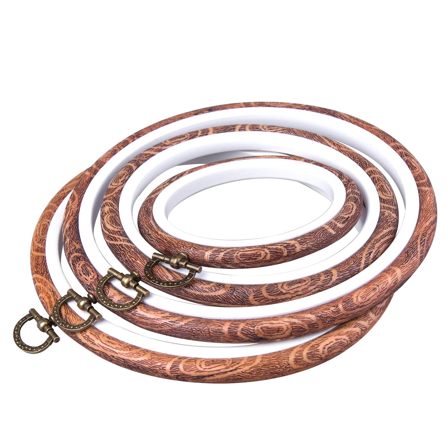 joybest 4 Pcs Embroidery Hoops Set Cross Stitch Hoop Ring Imitated Wood Display Frame-Circle and Oval Hand Embroidery Kits for Art Craft Sewing (Imitated wood)