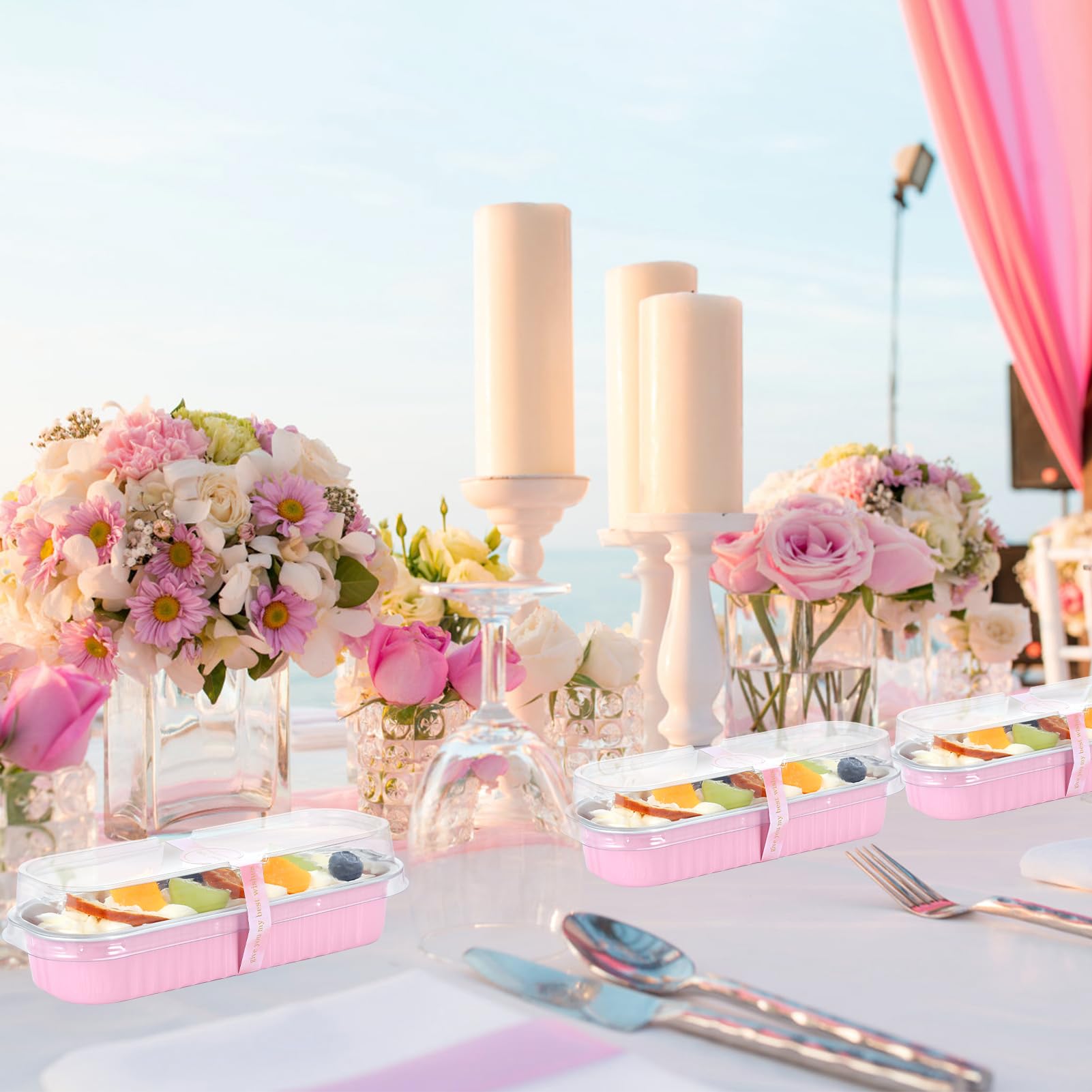 JuneHeart Mini Loaf Pans with Lids and Spoons, 30 Pack, Pink, 6.8oz, Rectangular Aluminum Foil Baking Pans