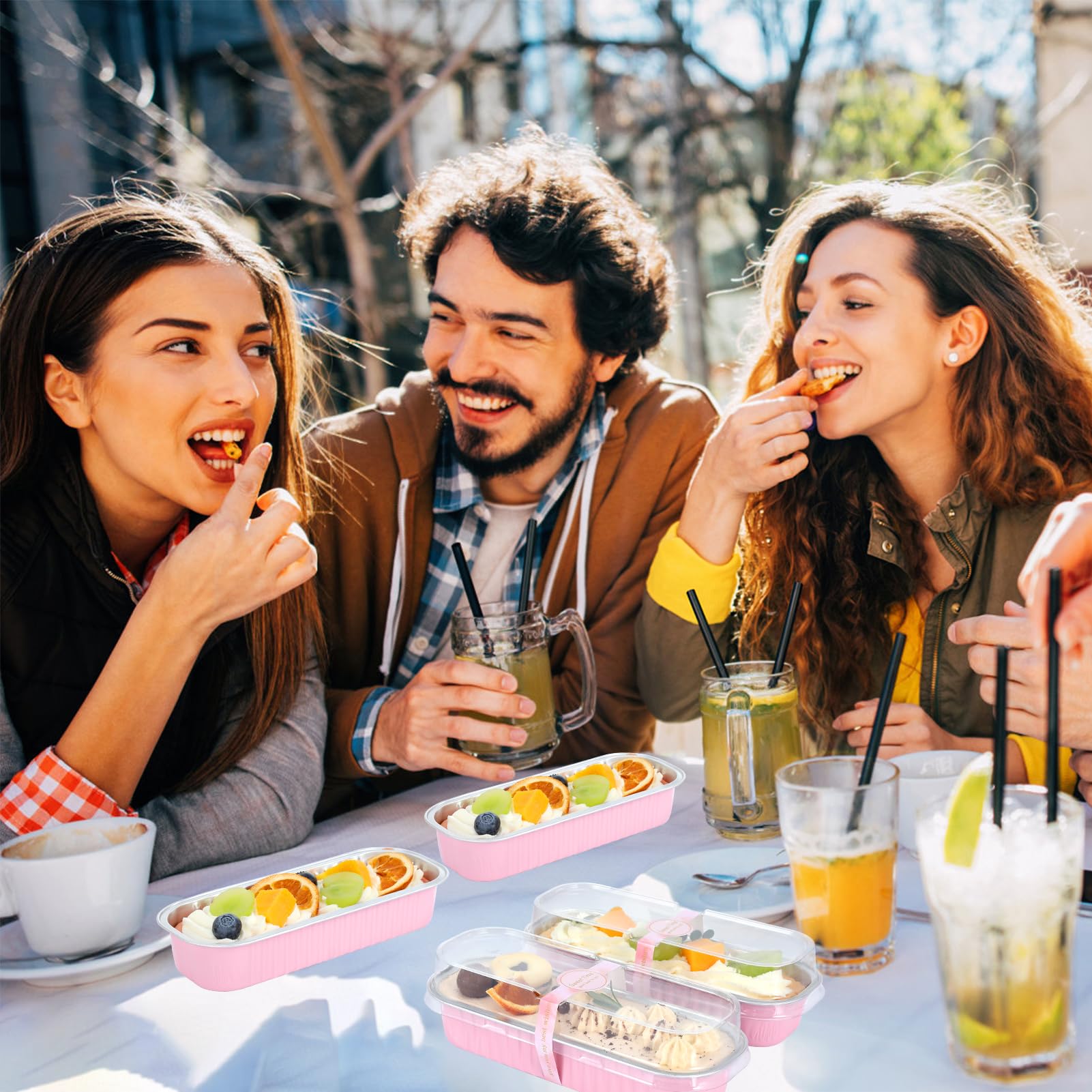 - Mini cake pans with lids: Not only will you receive 30 6.8oz aluminum foil pans measuring 6.5x2.5x1.2 inches with 30 clear lids, but also 30 individually wrapped disposable sporks and 3 sealing stickers.