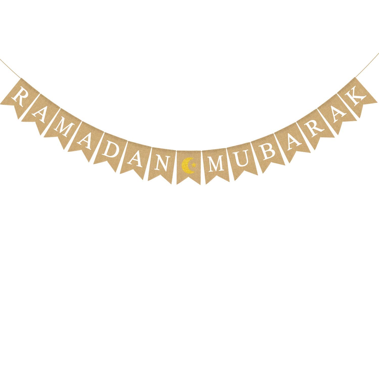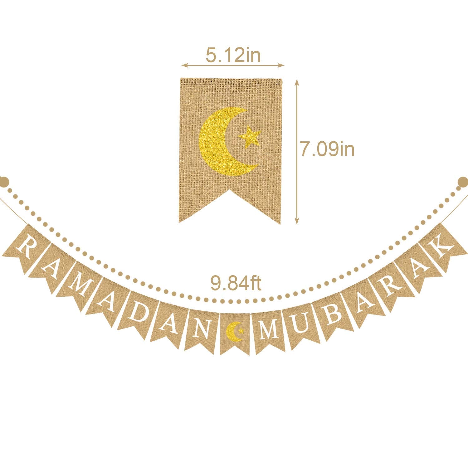 Jute Burlap RAMADAN MUBARAK Banner with Moon and Star Mantel Fireplace Decoration