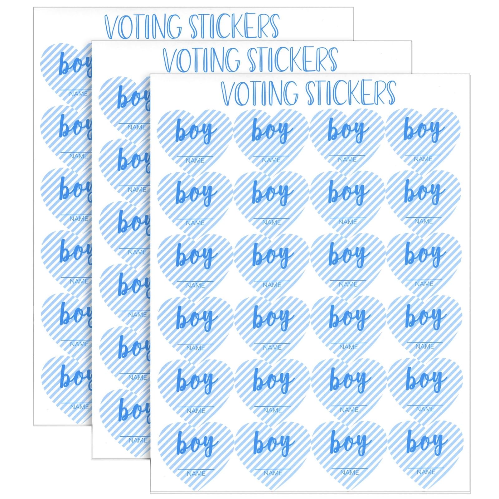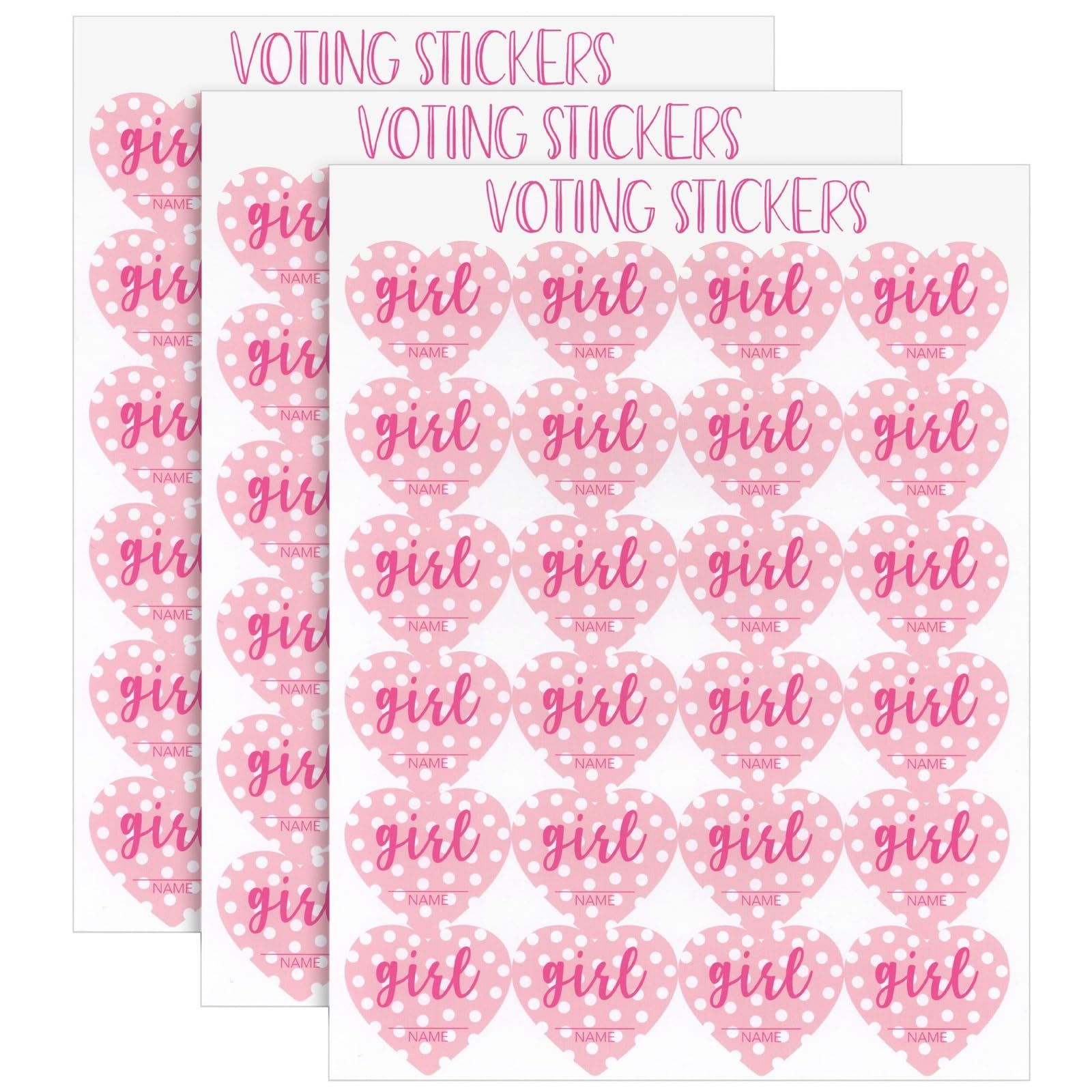 - Ample Voting Stickers: This boy or girl vote board set includes 144 stickers—72 pink heart stickers for 'girl' and 72 blue heart stickers for 'boy'—ensuring each guest can participate in the fun