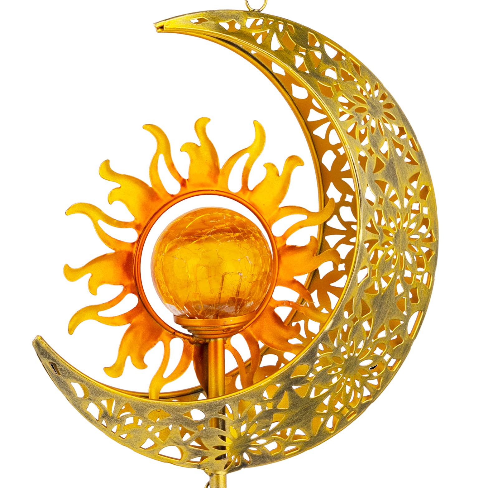 - 🌙Unique Design - Our LED solar light wind chimes designed into the shape of the moon. Being made of the premium material makes the Unique windchimes waterproof. Retro moon crackle glass ball wind chimes is composed of premium metal top with S hook, led light surrounded by the Sun shape frame and 5 bronze waterproof aluminum tubes. The beautiful wind chimes design spice up your garden, Garden, Yard, Patio and Lawn.