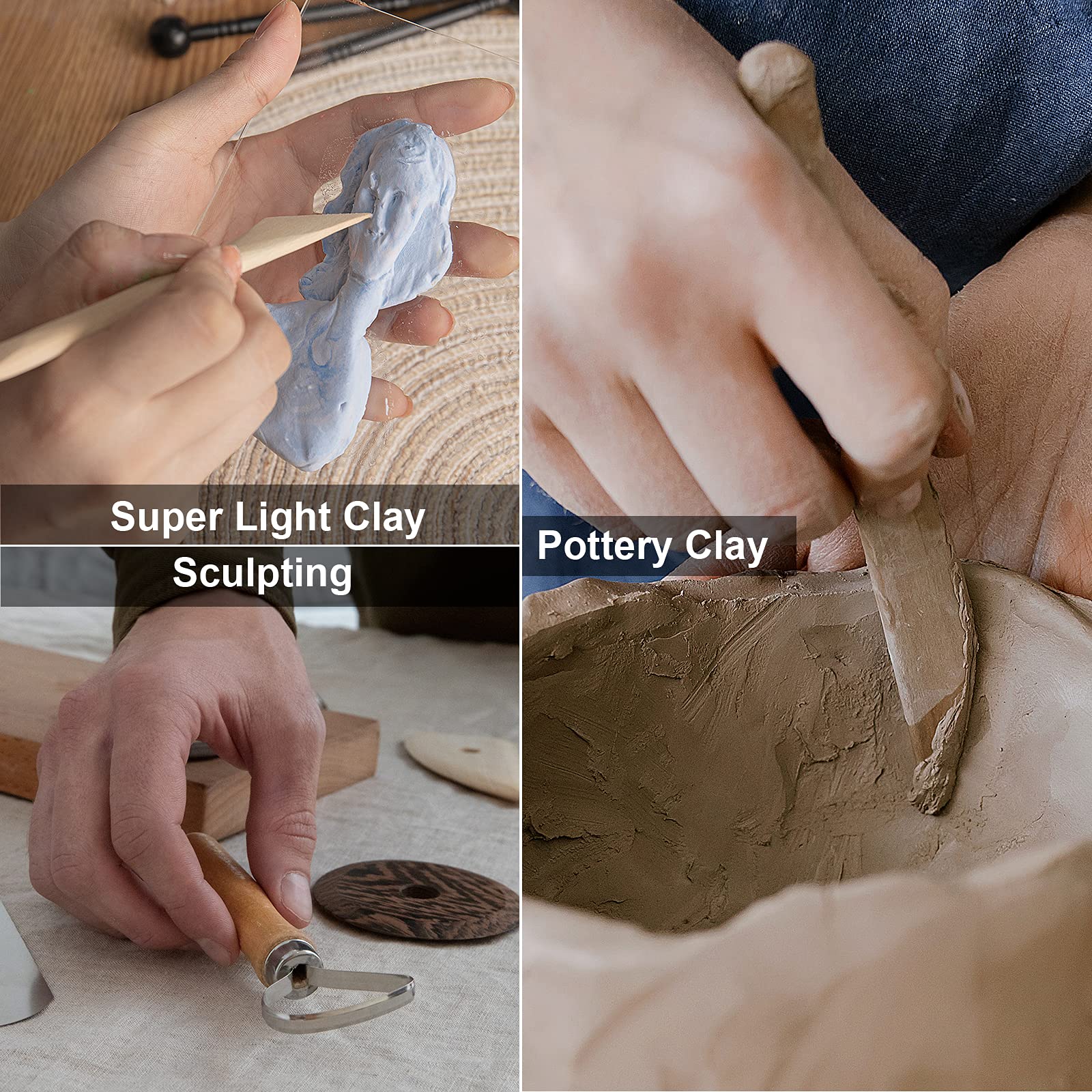 - 【Premium Quality】The clay tools for sculpting are made from metal and wood for many years of use with smooth, sturdy, and lightweight construction for easy holding. You will be pleased with this air-dry clay pottery tool kit