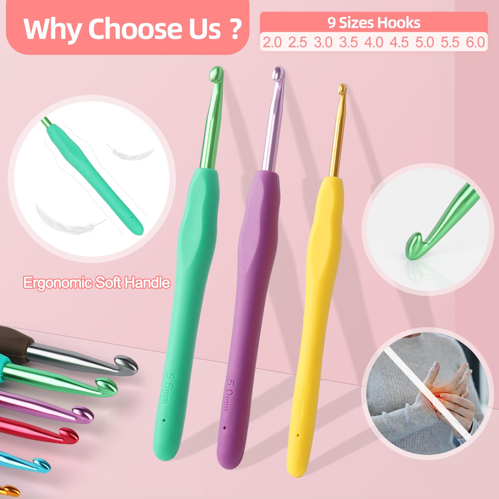 - 💝Complete Beginner Crochet Kit: This beginner crochet kit for adults or kids has everything you need to learn to crochet. Incl 3-in-1 detailed beginner crochet book, 5 rolls of crochet yarn, full-size crochet hooks, 1 pack of 50g stuffing,100 crochet animal safty eyes and portable crochet bag. Complete crochet kit for beginners. Easy to learn, so you can easily master crochet skills and experience the fun of making.