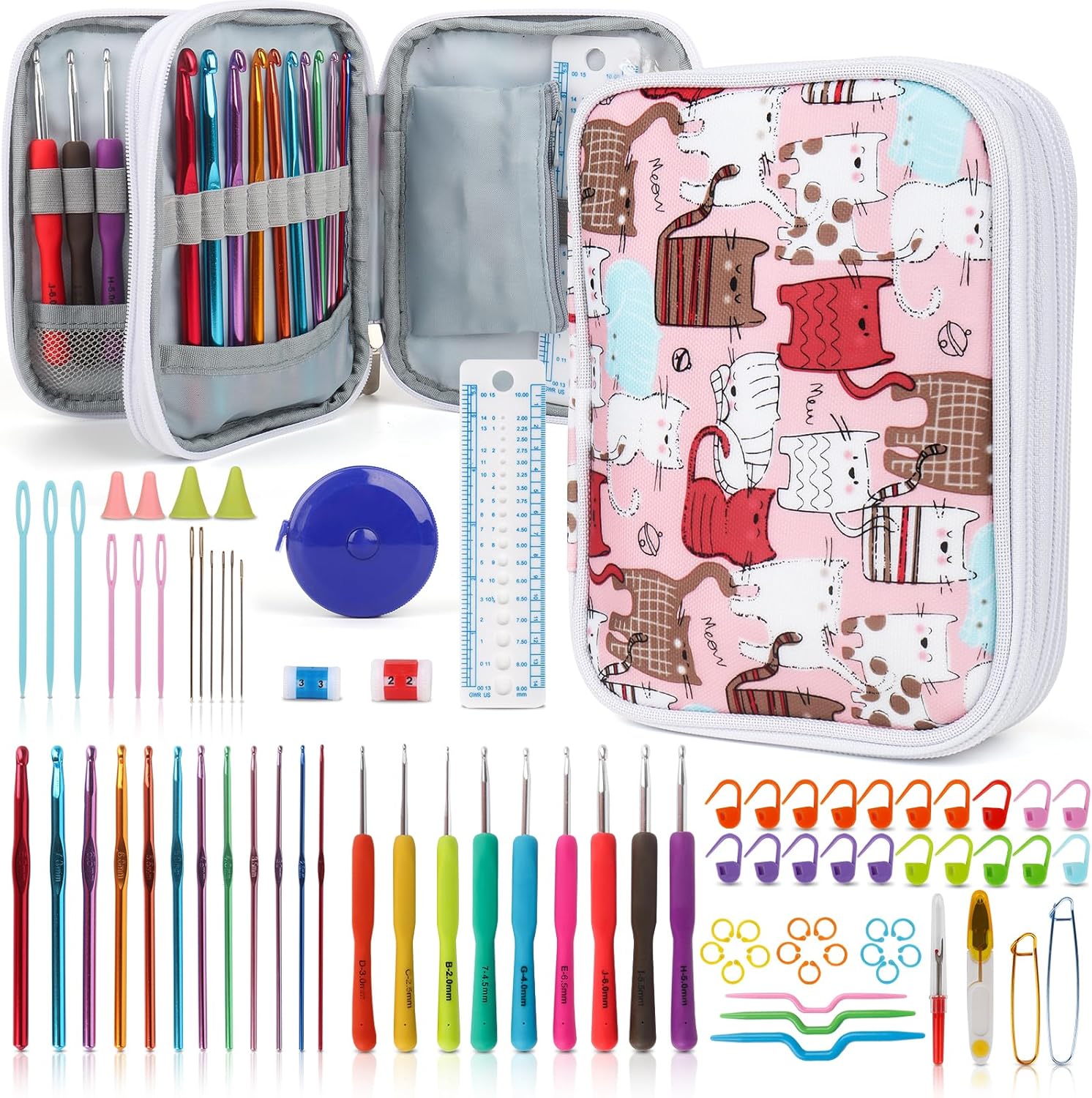 Katech Crochet Hooks Kit with Case, 85-Piece, Ergonomic Crochet Needles Weave Yarn Kits DIY Hand Knitting Art Tools for Beginners and Experienced Crochet Lovers