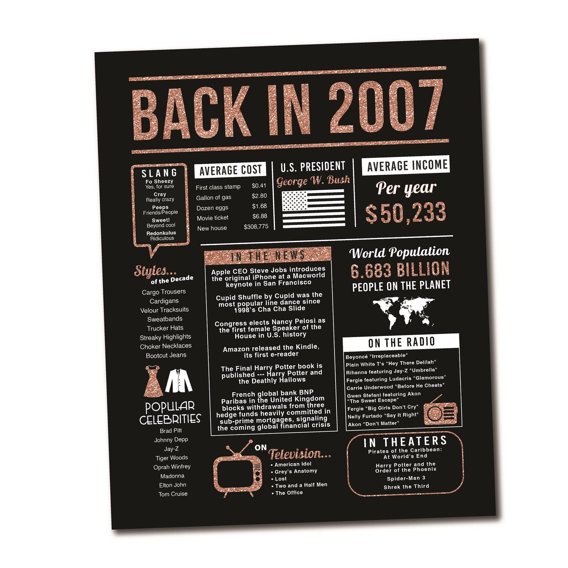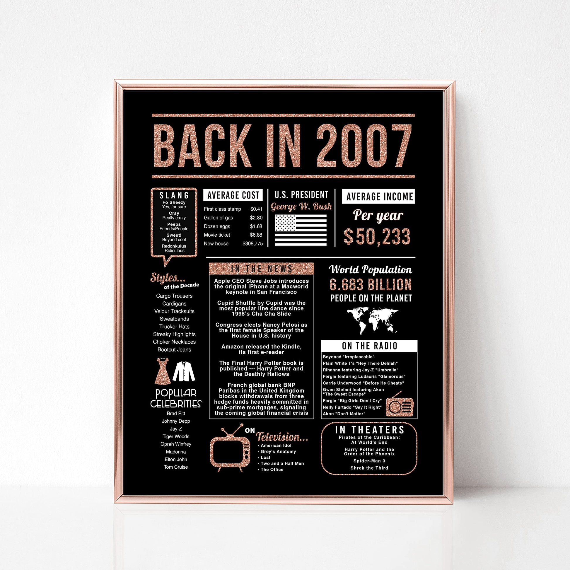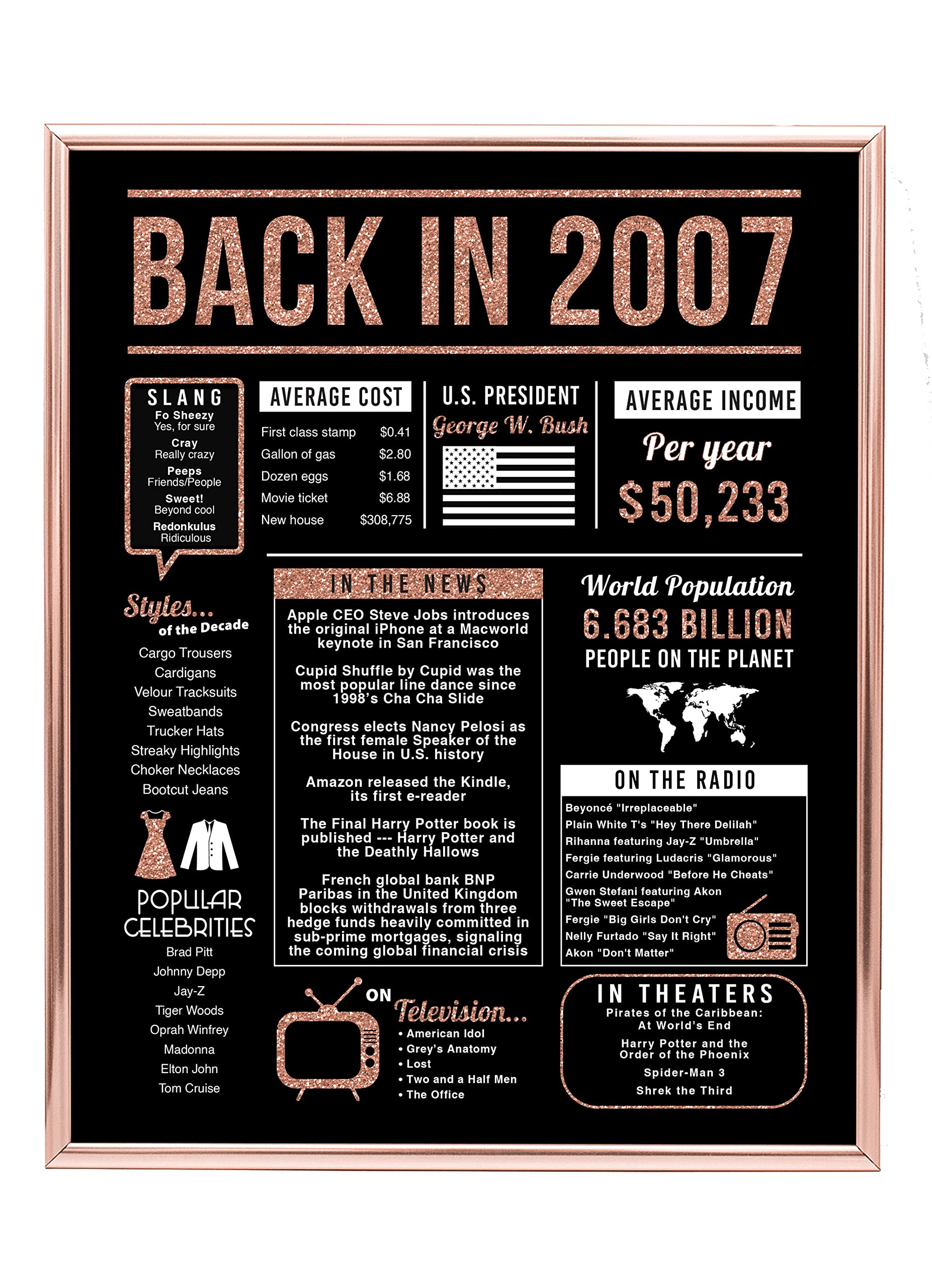 Sweet 16 Birthday Decorations - Sweet 16 Gifts for Girls - 16th Birthday Decorations for Girls - 16th Birthday Gifts for Girls - Includes 2007 Back-in Sign (Unframed) Rose Gold