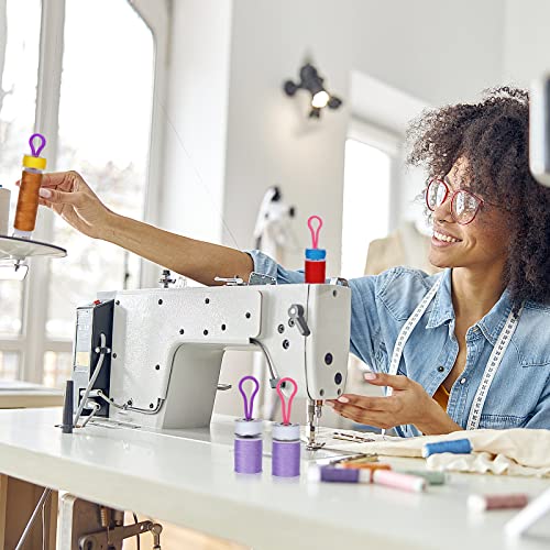 Details: Quantity: A pack of 30 pieces in three colors (rose red, light blue, and purple) Material: The bottom line bracket is made of high-quality plastic. Widely used: They are ideal accessories for sewing thread finishers, sewing beginners, embroidery thread finishers, sewing beginners, tailors and sewing beginners. Suitable for most thread spools and bobbins,
