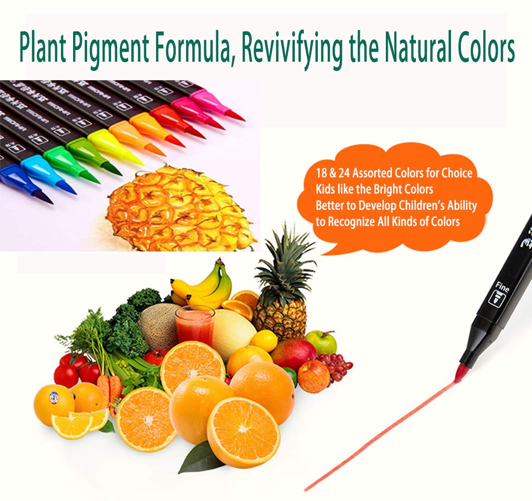 - Dual Tip - Brush and fine twin tips for precise highlighting and underlining, for drawing with both thin and thick lines. Unlike other duo markers, the caps are different on each end so the child knows which side is the brush tip and which is the fine tip.