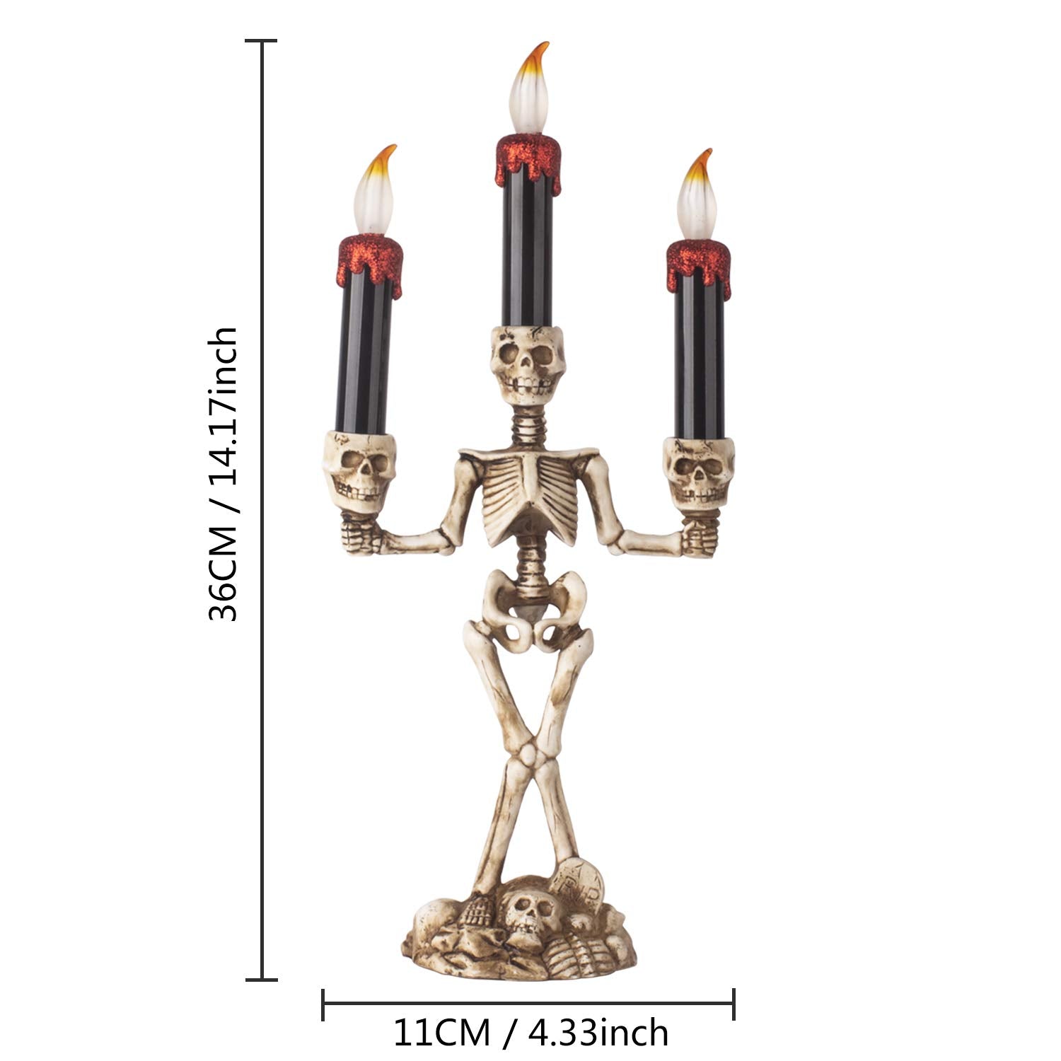 Details: KI Store Halloween Candelabra with LED Flameless Skeleton Skull Candles Holder Battery Operated