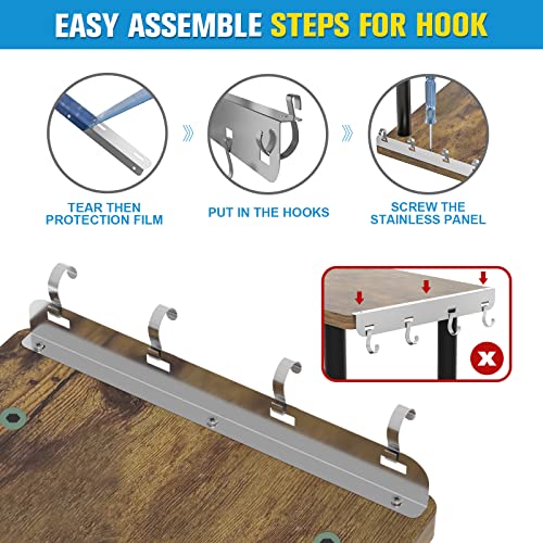 - MORE STEADY AND STABLE: 3 tire shelf adds 2 aluminum tubs make this kitchen organizer more stable and durable, also these 5 plastic non-slip feet can protect your countertop surface better. 4 stainless steel hooks fit for small cooking tools such as measuring spoons and a vegetable peeler, potato masher scissors and so on keeps them handy and out of the way.
